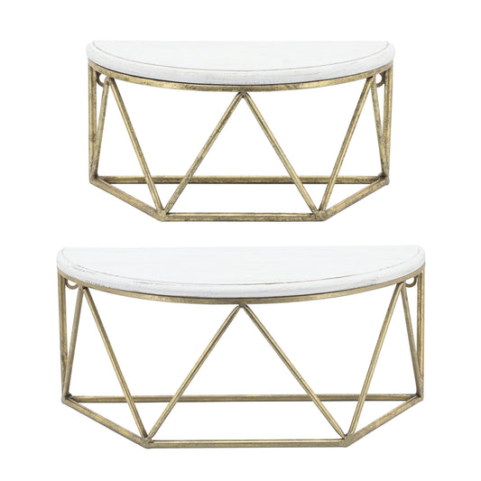 Wood/metal 12"l Demilune Wall Shelf, Wht/gry