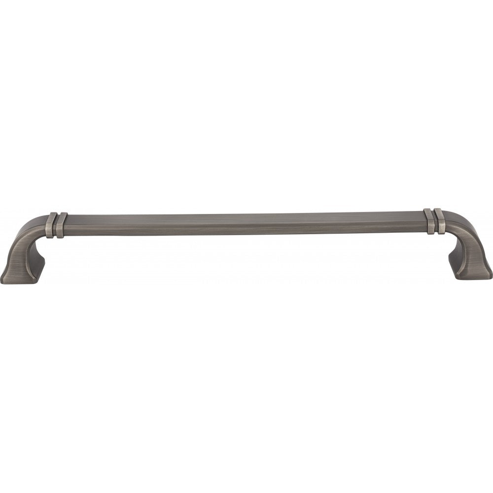 With its soft square design and wider chamfer with strap detail, Ella's dazzling personality adds brilliance to any kitchen. This 13" overall length Brushed Pewter Jeffrey Alexander appliance handle is also available in three standard pull lengths. This pull is accented beautifully with its matching faceted knob, resembling an emerald-cut jewel. Available in five luxurious finishes, this collection is the epitome of "jewelry for kitchens." Each item is individually wrapped to protect the item from damage. Attachment hardware is included.