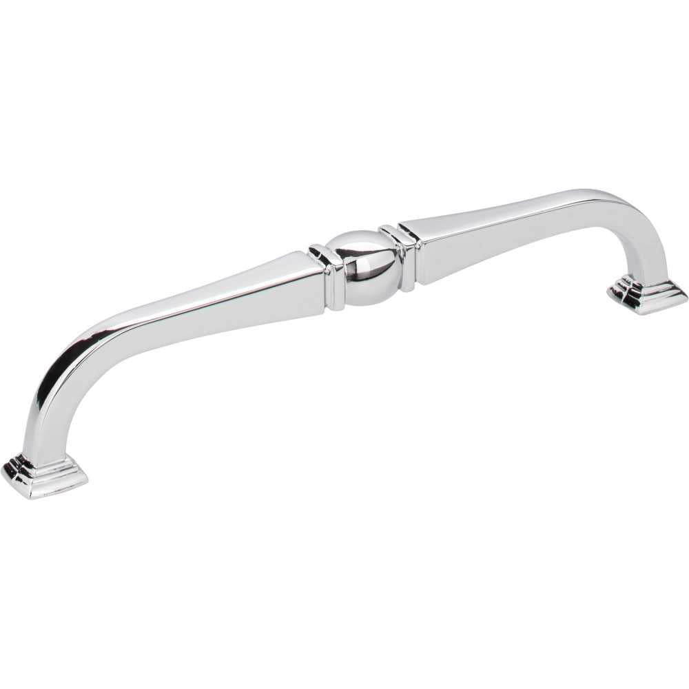Katharine by Jeffrey Alexander brings a bit of dramatic glamour to any home. Harkening days of Old Hollywood, this alluring and curvaceous 6-15/16" overall length Polished Chrome pull is accentuated by the intriguing center detail and stacked square feet. This Jeffrey Alexander pull also features a higher hand clearance, making it a great option for Aging in Place. Available in two other standard pull lengths, pair this pull with a coordinating knob offered in two sizes. Choose from four classic finishes to complete any traditional or transitional space. Each item is individually wrapped to protect the item from damage. Attachment hardware is included.