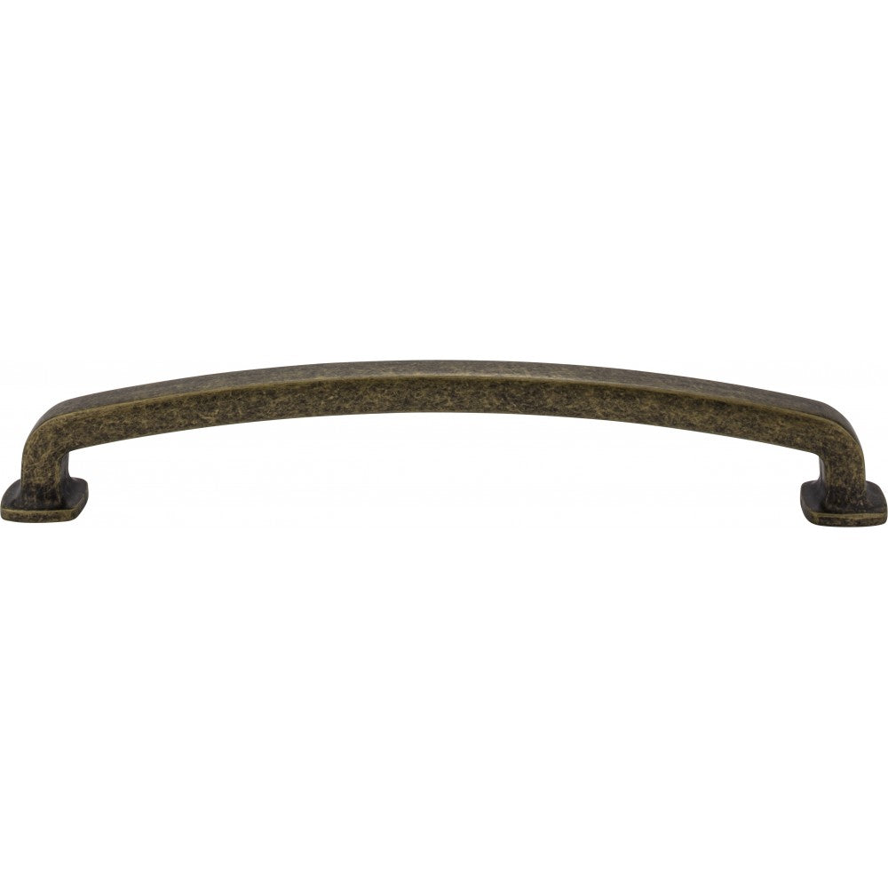 - 13-1/4" Overall Length Forged Look Flat Bottom Appliance Pull. Holes are 12" center-to-center. Packaged with two 8-32 x 1" and two Break-away screws. Finish: Distressed Antique Brass