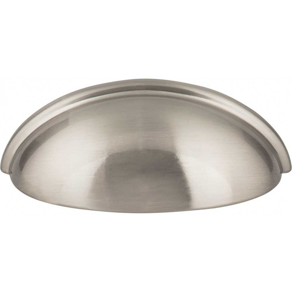 - 3-11/16" Overall Length Small Cup Cabinet Pull. Holes are 3" center-to-center. Packaged with two 8-32 x 1" and two Break-away screws. Finish: Satin Nickel