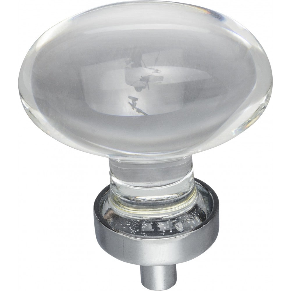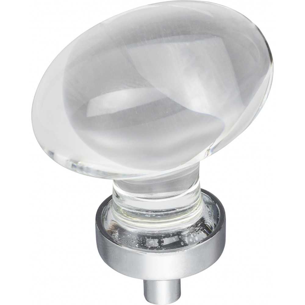 Recalling the glamorous era of Old Hollywood, Harlow glass knobs add excitement and radiance to any kitchen, bath, or closet. This 1-5/8" overall length Polished Chrome football shaped knob (also available in a smaller size) is the perfect romantic accent. This Jeffrey Alexander collection offers four finish options, meeting both traditional and transitional design needs. Each item is individually wrapped to protect the item from damage. Attachment hardware is included.