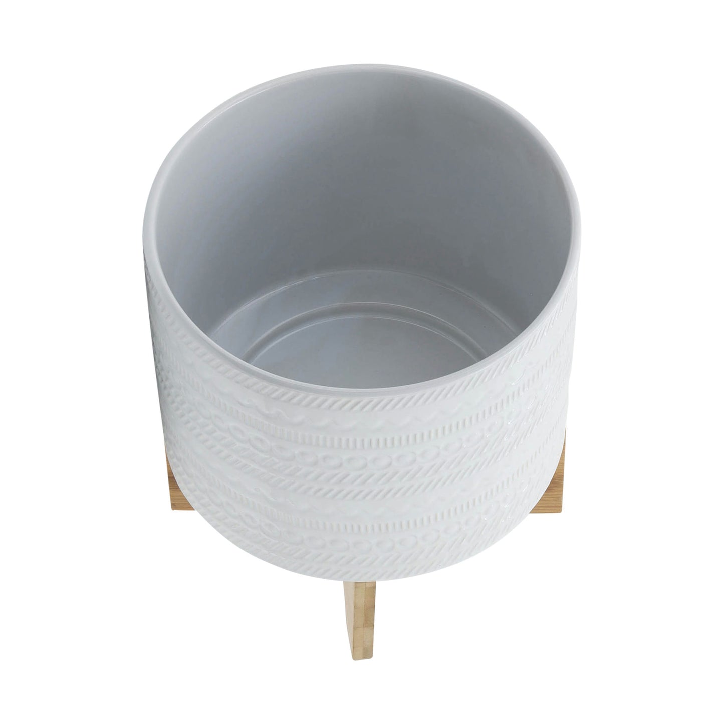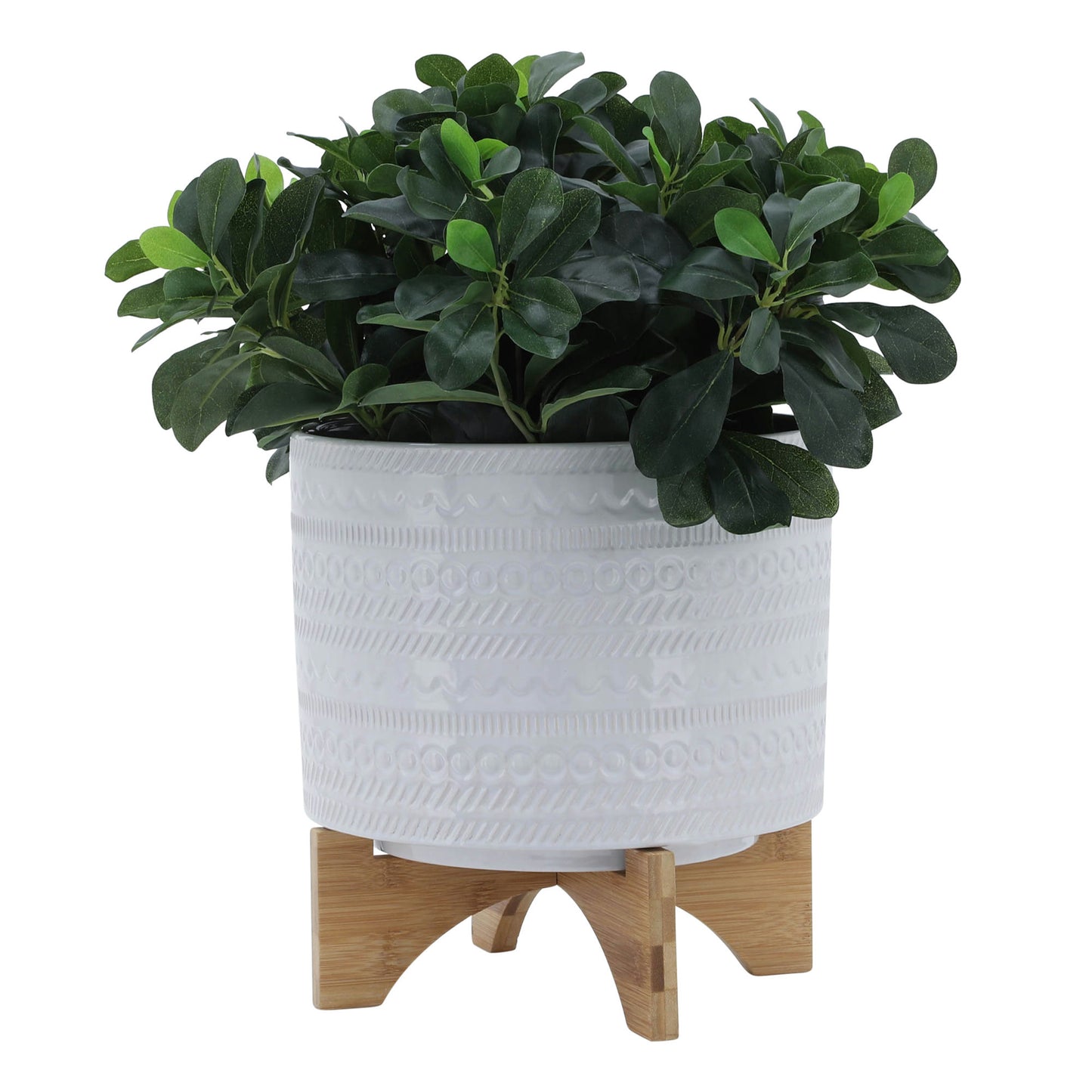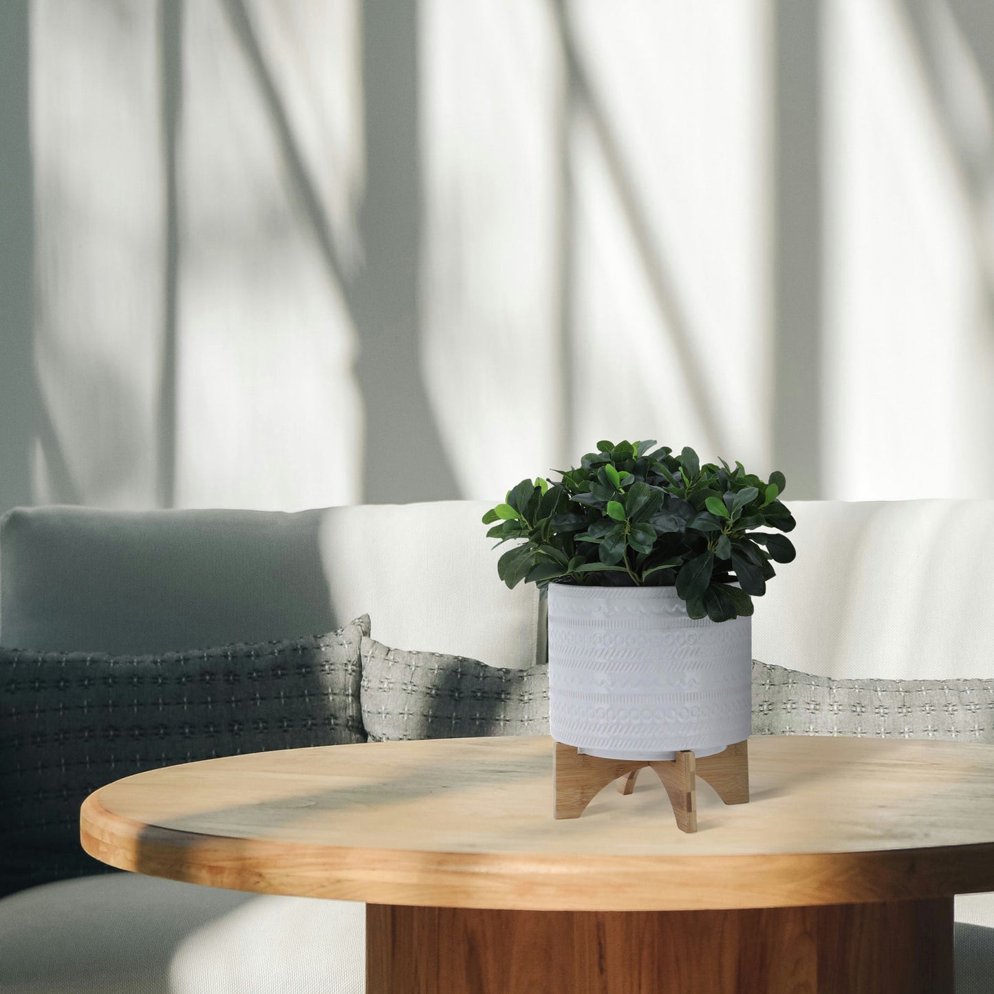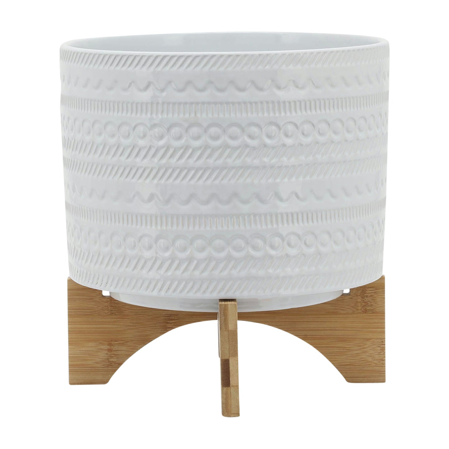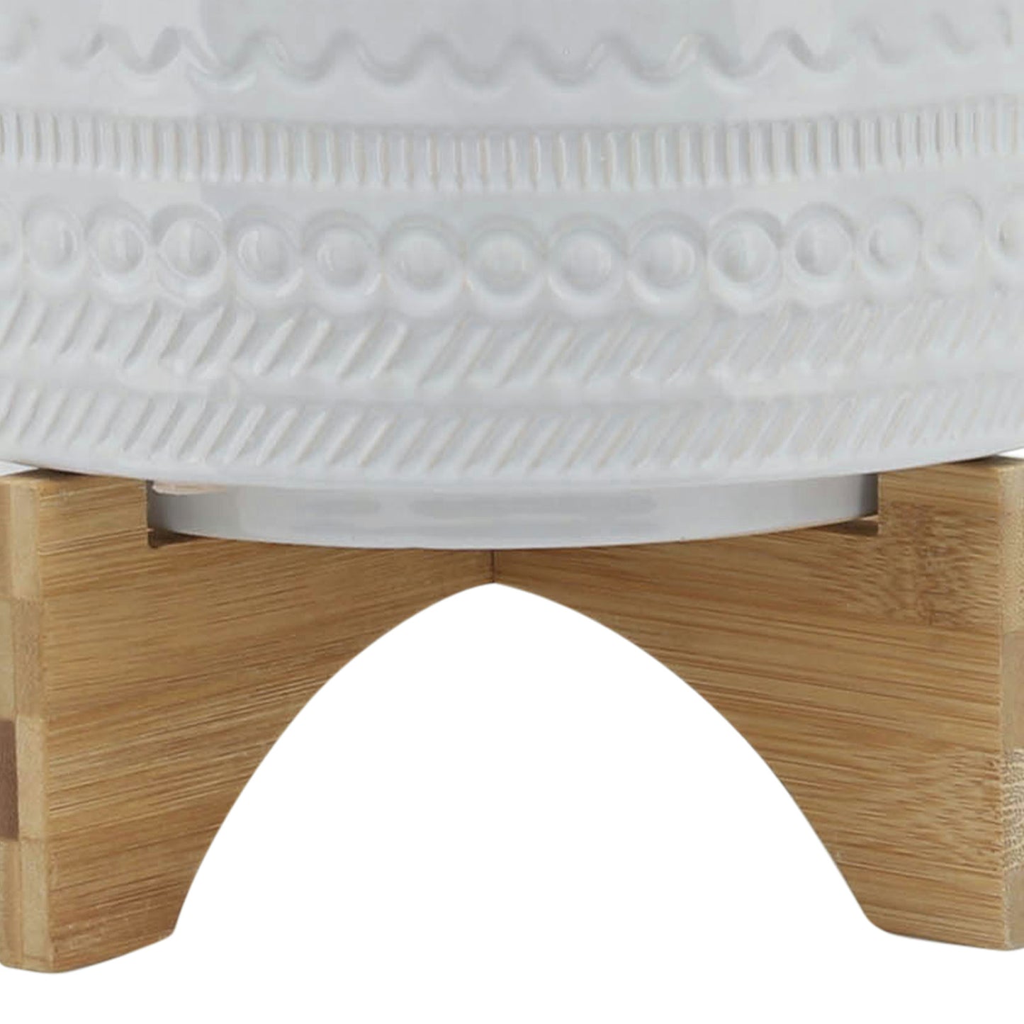 11" Tribal Planter W/ Wood Stand, White. Adorn Your Space With This Tribal Planter. This Planter On Wood stand Will Help Upgrade Your Plant Game In Style. Made Of Ceramic, This Has A Glossy White Finish. This Planter Will Add A Bit Of Chic Nature To Your Living Space. It Will Help You Start Your Own Little Garden Indoors!