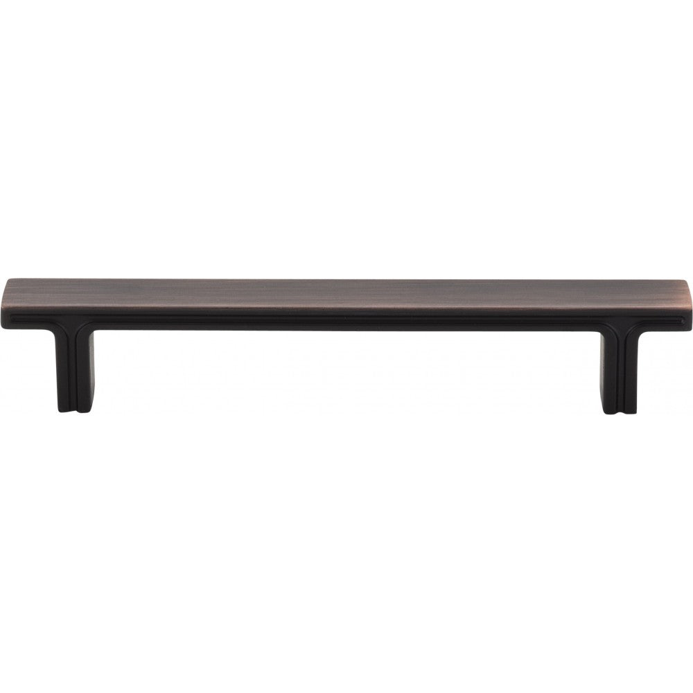 The intricate decorative line detail and soft edge of this 6-3/8" overall length modern Brushed Oil Rubbed Bronze cabinet pull create a unique and unrivaled contemporary look. Pair this Jeffrey Alexander pull with a coordinating square or rectangle knob, or mix in five other pull length options to fit even the widest drawer. This stylish collection is available in three additional alluring finishes to complement any modern or contemporary design. Each item is individually wrapped to protect the item from damage. Attachment hardware is included.