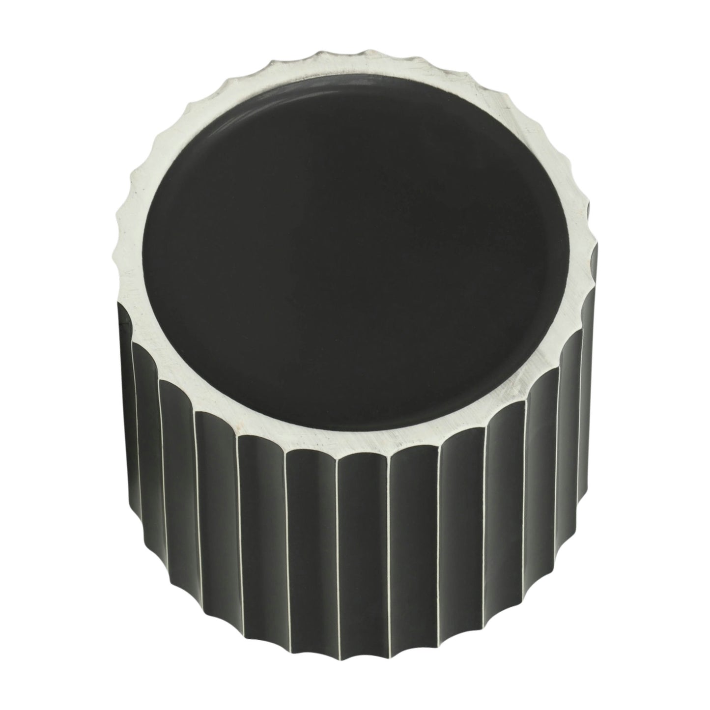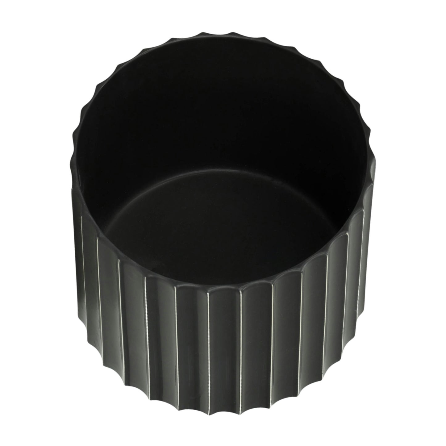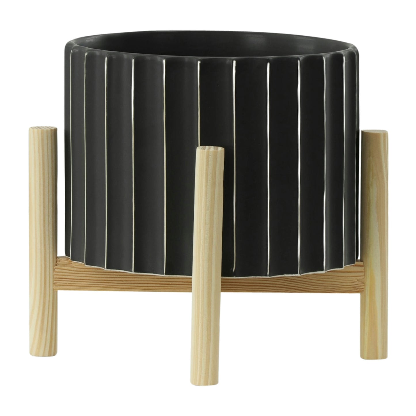 12" Ceramic Fluted Planter W/ Wood Stand, Black