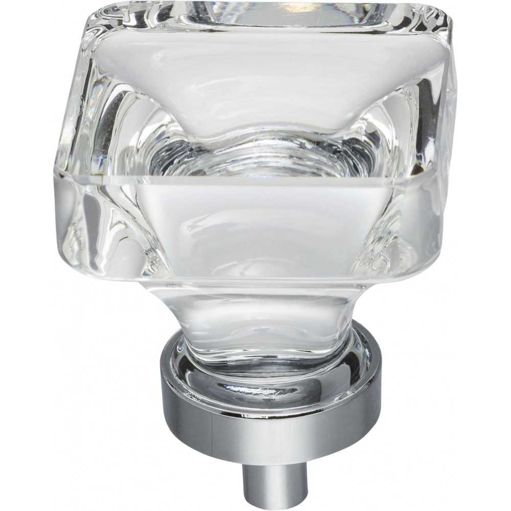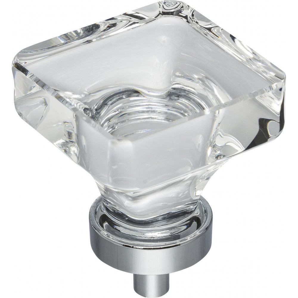Recalling the glamorous era of Old Hollywood, Harlow glass knobs add excitement and radiance to any kitchen, bath, or closet. This opulent 1-3/8" overall length Polished Chrome square shape cabinet knob, also available in a smaller size, adds a touch of modern elegance to any space. This Jeffrey Alexander collection offers four finish options, meeting both traditional and transitional design needs. Each item is individually wrapped to protect the item from damage. Attachment hardware is included.