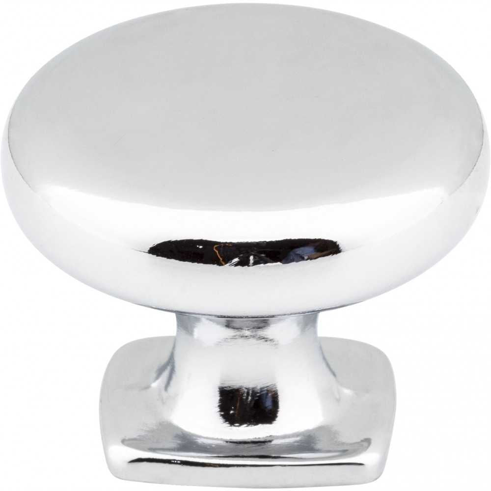 - 1-3/8"Diameter Forged Look Flat Bottom Knob. Packaged with one 8-32 x 1" and 1-3/4" Break-away screw. Finish: Polished Chrome