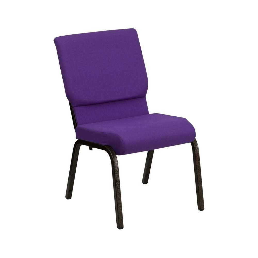 18.5''W Stacking Church Chair in Purple Fabric - Gold Vein Frame