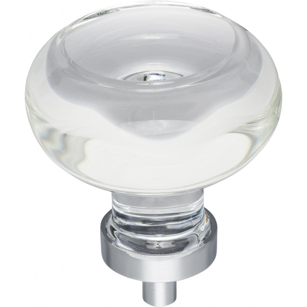 - 1-3/4" Diameter Glass Button Cabinet Knob. Packaged with one 8-32 x 9/16" and 1-3/4" Break-away screw. Finish: Polished Chrome