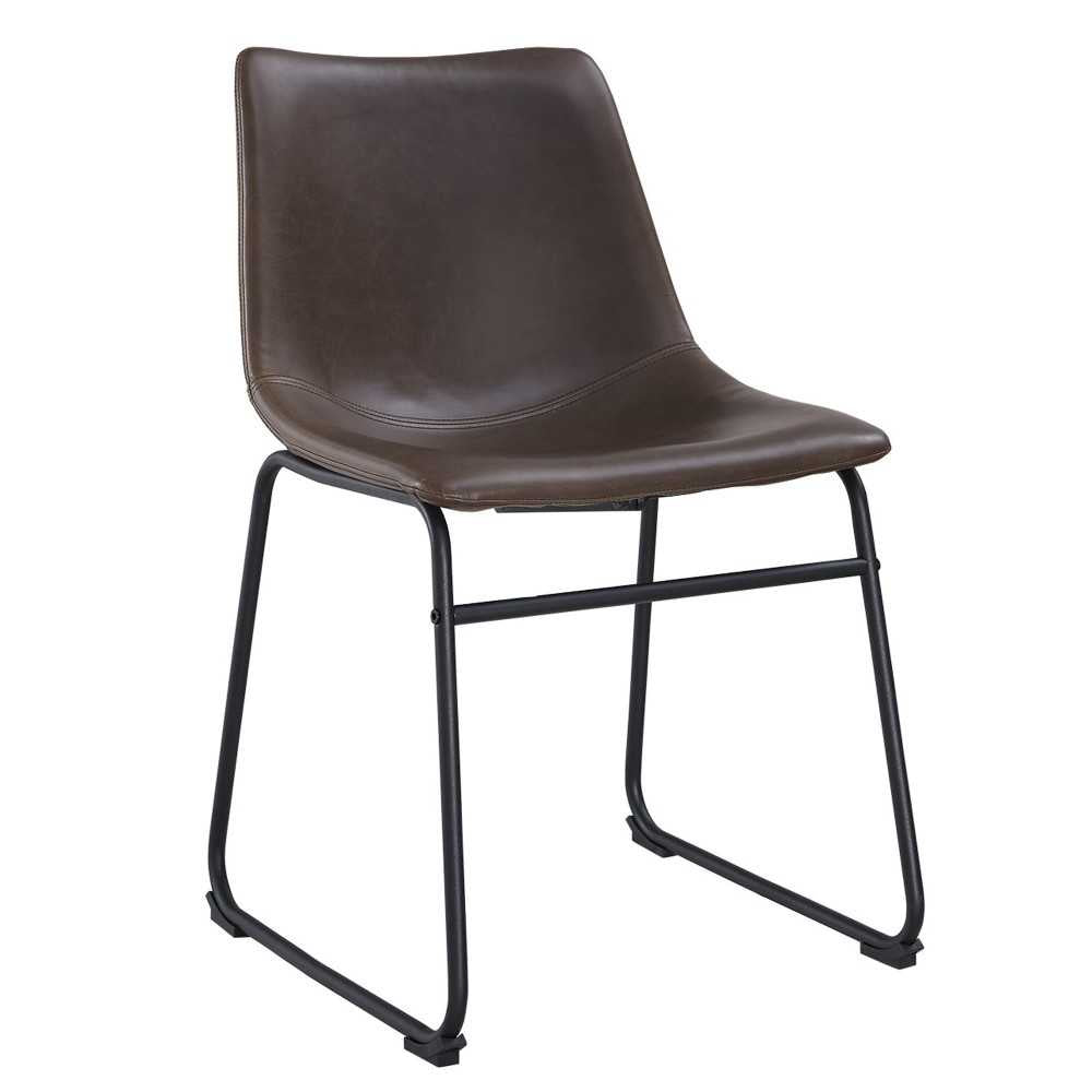 Bring the sophisticated look of leather seating to your kitchen with these faux leather dining chairs. They'll be the perfect addition to your eating space and are great for everyday use. The synthetic leather is soft to the touch, the curved seating provides comfort and the seat is supported by powder-coated steel legs for a durable, long lasting design. These chairs look best in an urban industrial styled space, but also can coordinate well with many other popular interior styles and can be used in home offices and living rooms as an accent chair.