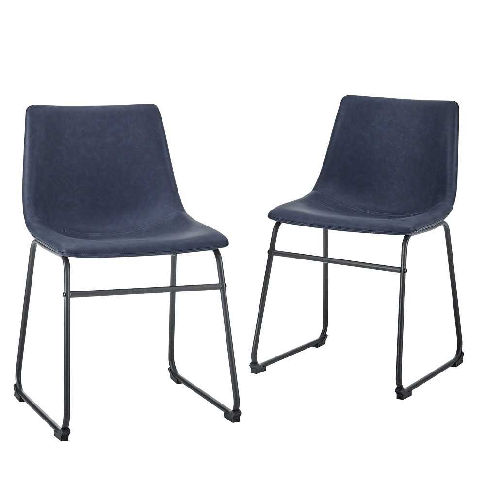 18" Industrial Faux Leather Dining Chair, Set of 2 - Navy Blue