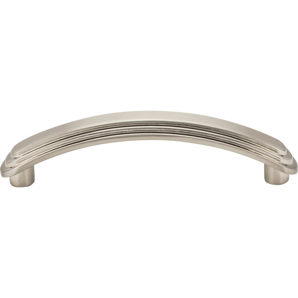 - 4-1/2" Overall Length Stepped Rounded Cabinet Pull. Holes are 96 mm center-to-center. Packaged with two 8-32 x 1" and two Break-away screws. Finish: Satin Nickel