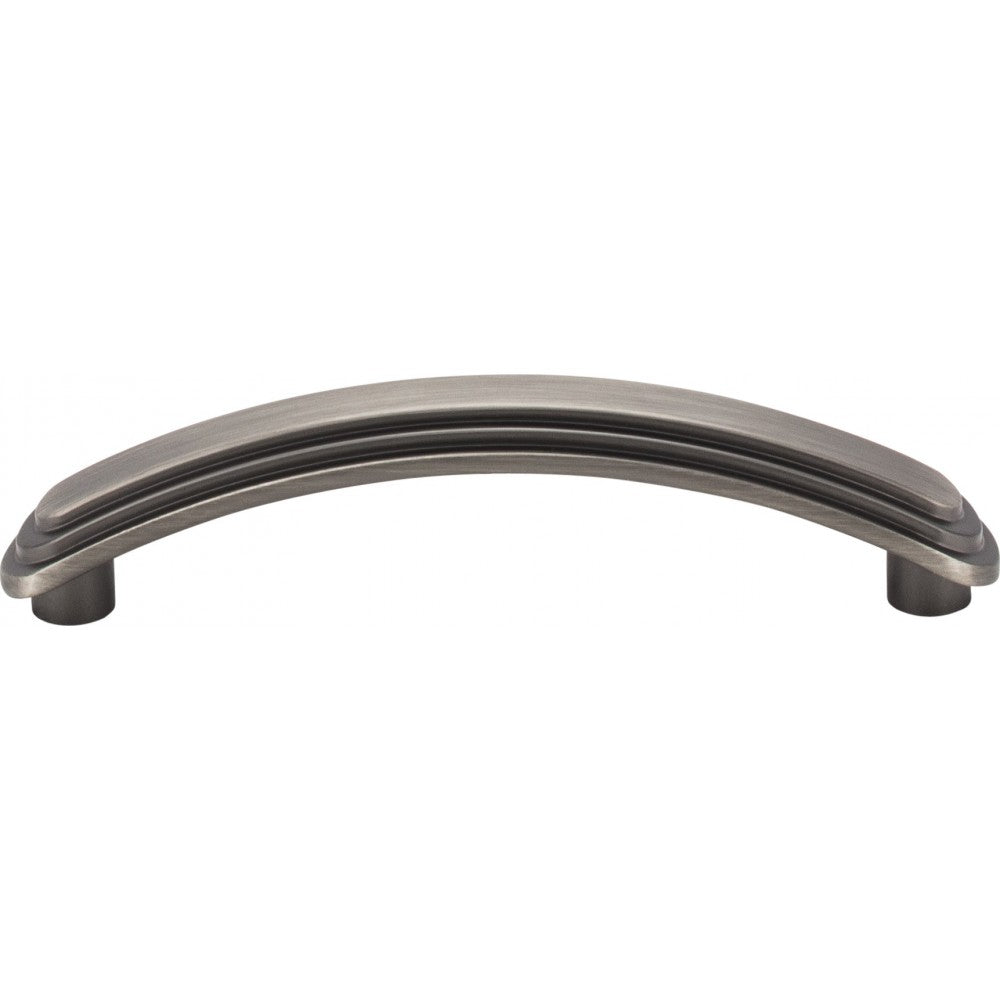 - 4-1/2" Overall Length Stepped Rounded Cabinet Pull. Holes are 96 mm center-to-center. Packaged with two 8-32 x 1" and two Break-away screws. Finish: Brushed Pewter