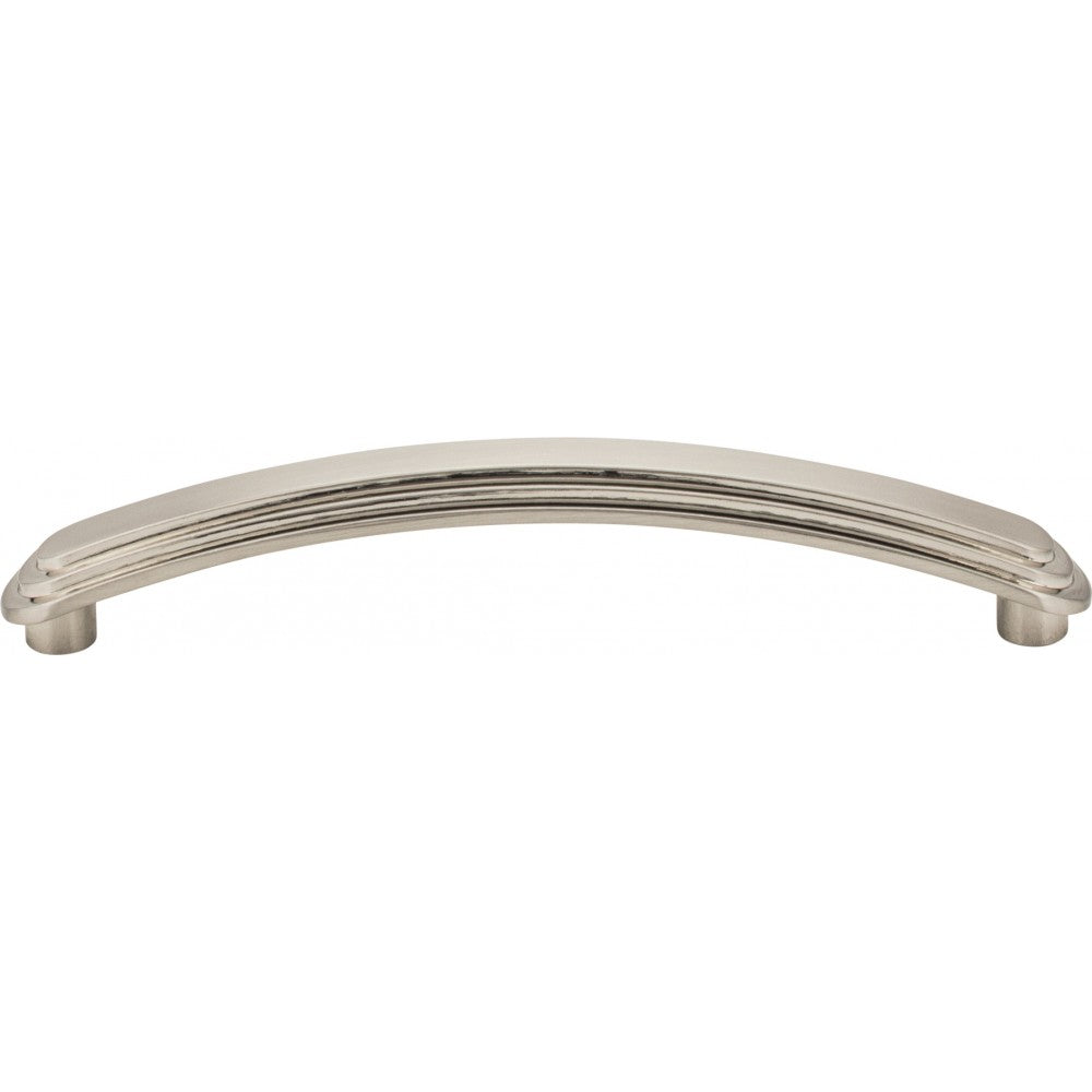 - 5-3/4" Overall Length Stepped Rounded Cabinet Pull. Holes are 128 mm center-center. Packaged with two 8-32 x 1" and two Break-away screws. Finish: Satin Nickel