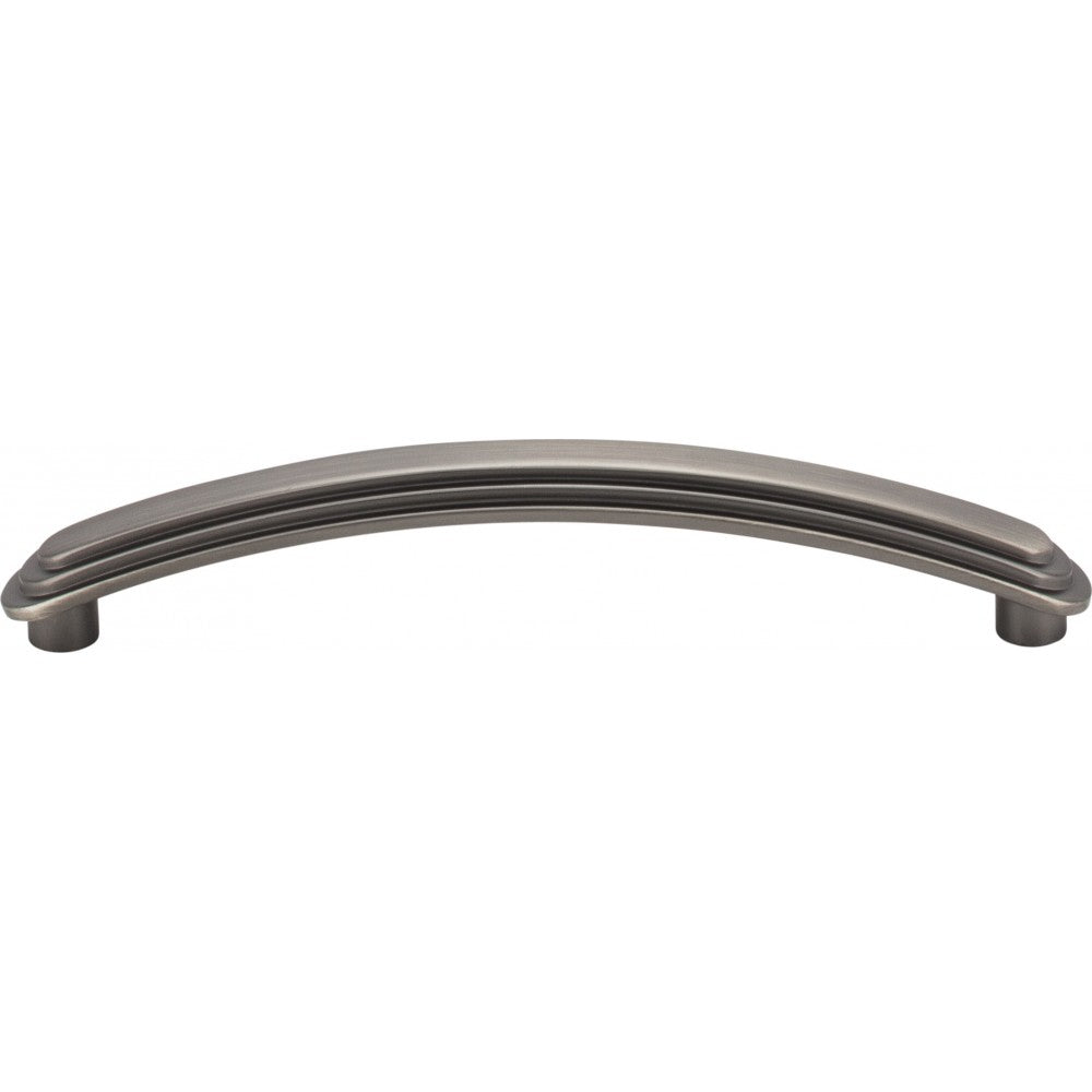 - 5-3/4" Overall Length Stepped Rounded Cabinet Pull. Holes are 128 mm center-center. Packaged with two 8-32 x 1" and two Break-away screws. Finish: Brushed Pewter