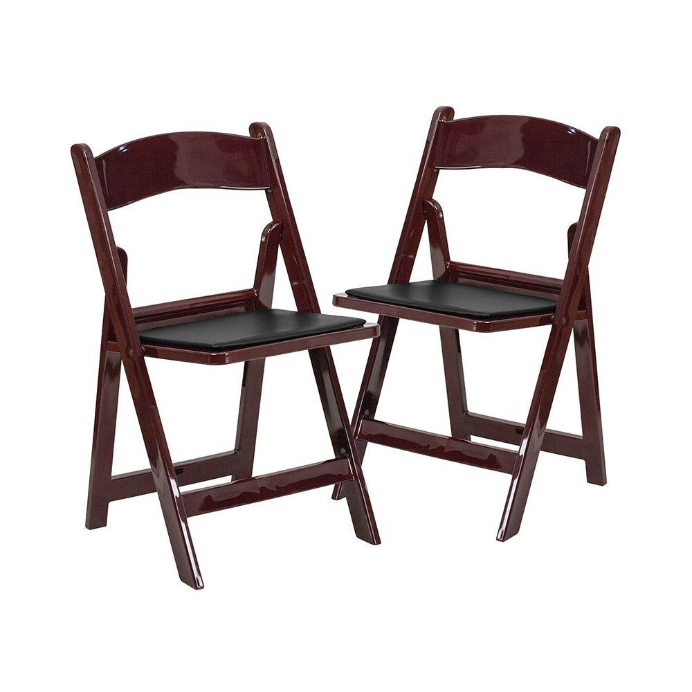 2 Pack 1000 lb. Capacity Red Mahogany Resin Folding Chair with Black Vinyl Padded Seat