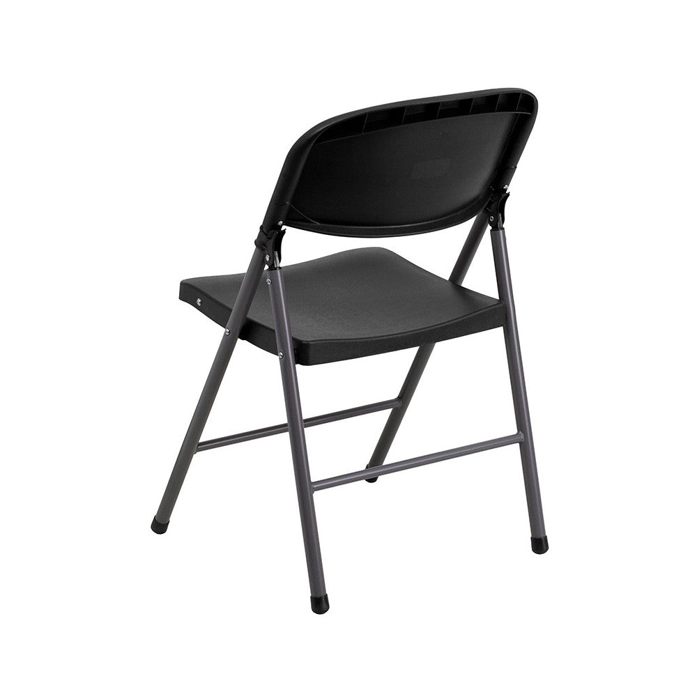 2 Pack 330 lb. Capacity Black Plastic Folding Chair with Charcoal Frame