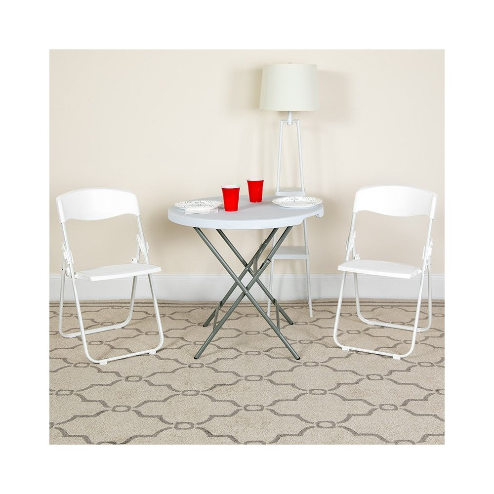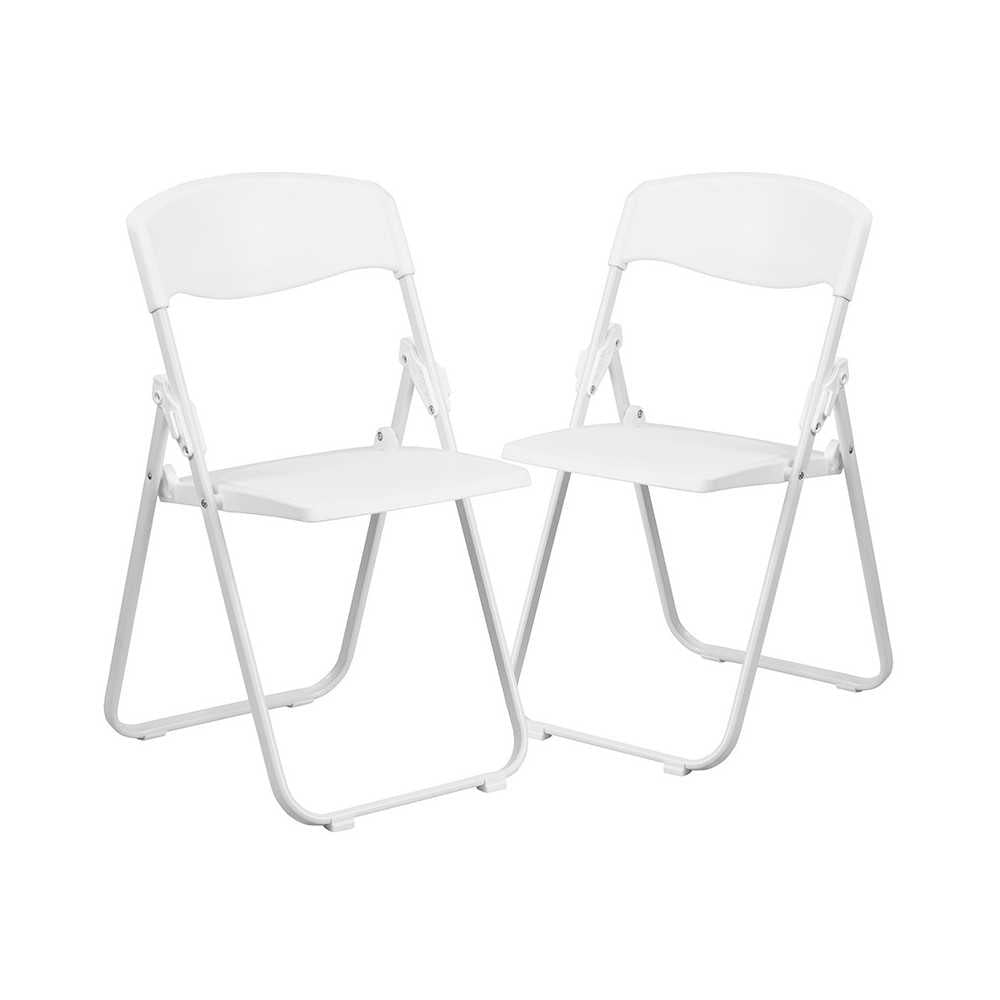2 Pack 500 lb. Capacity Heavy Duty White Plastic Folding Chair with Built-in Ganging Brackets