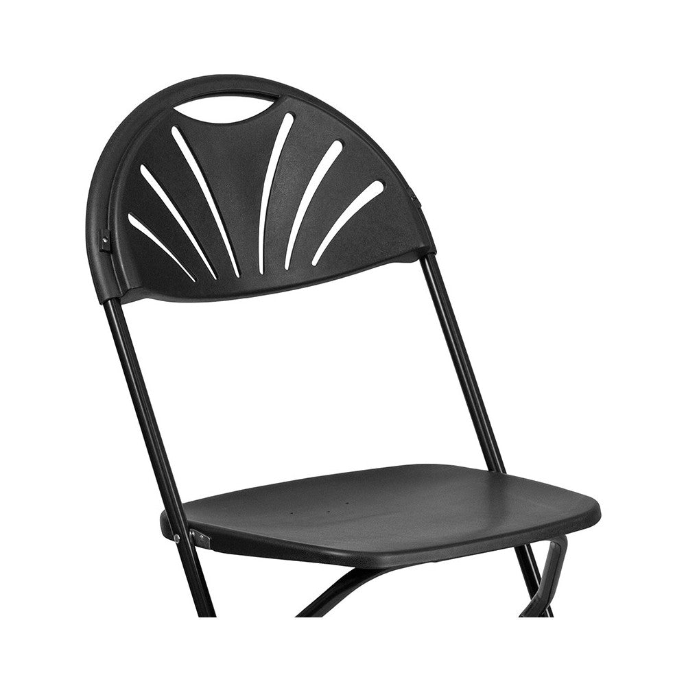 2 Pack 650 lb. Capacity Black Plastic Fan Back Folding Chair