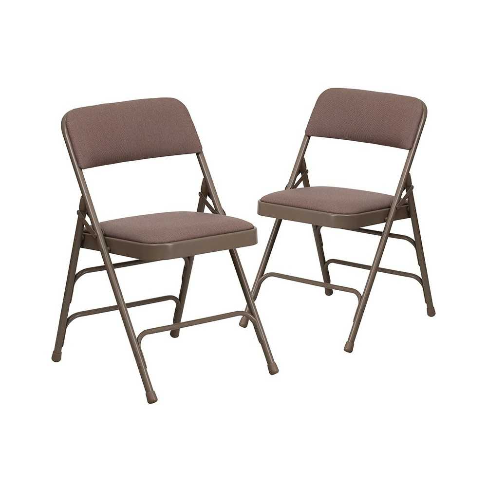 Host Thanksgiving at your house and leave out "bring your own chair" on the invite we've got you covered with these padded folding chairs. These heavy-duty metal folding chairs are built for commercial businesses who host a myriad of events and need to accommodate people of varying sizes. Portable chairs are ideal in community centers to transport from storage to venue floor. Change the scenery with these outdoor metal chairs by taking the party outside. Take care of your chairs so they last you many years by storing indoors. Its 18-gauge curved steel frame is triple braced with leg strengthening support bars to hold up to 300 pounds while the non-marring floor glides protect your flooring from scuffs and scrapes. Celebrate all family events at your home for guests to sit comfortably atop these upholstered folding chairs. These chairs come assembled to be of service as soon as they're delivered. [2-HA-MC309AF-BGE-GG]