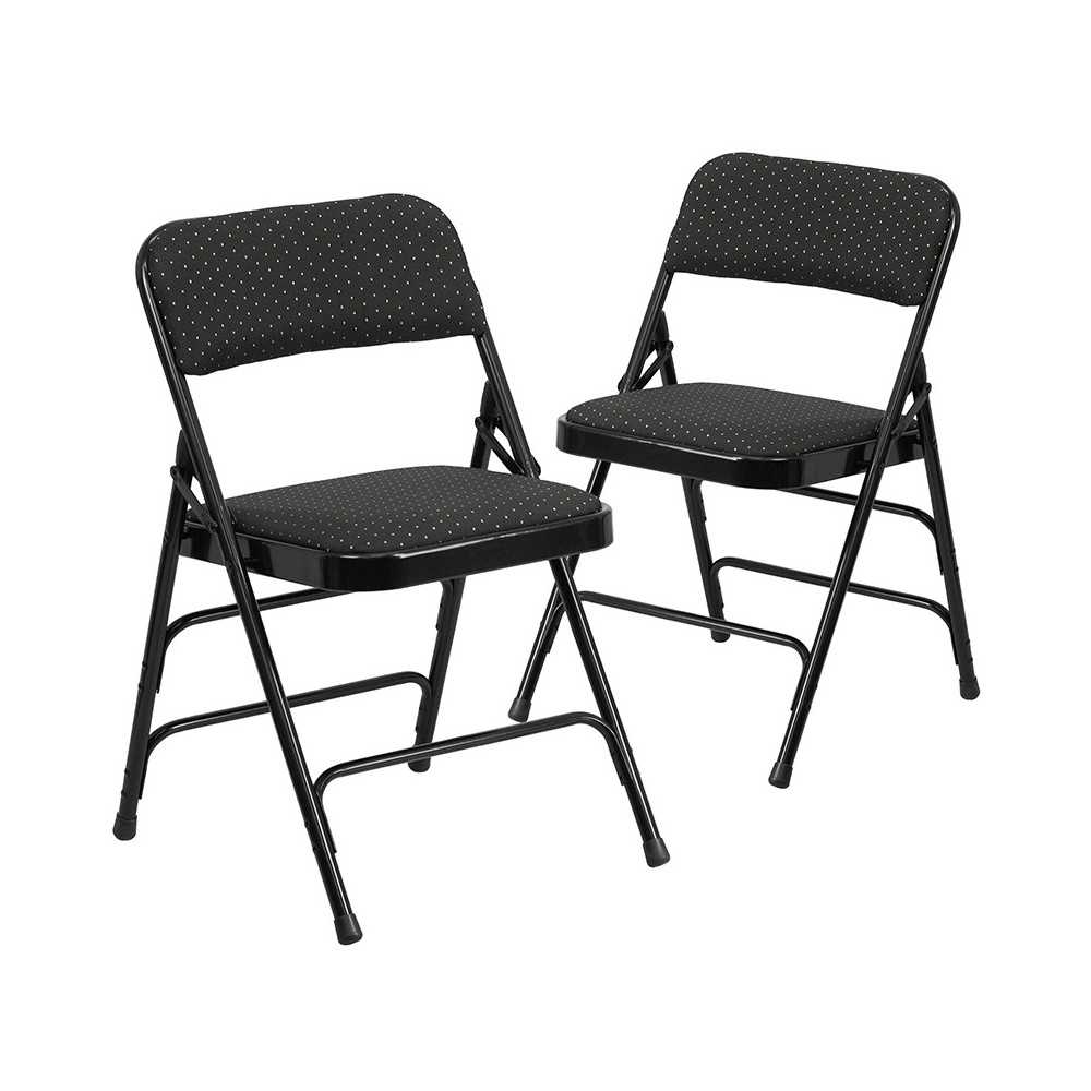 The perfect host is always prepared for that surprise guest and this classic upholstered metal folding chair is the perfect option to accommodate additional guests. These portable chairs are popular at community centers due to their durability, compact storing capability and ease of setup. Suitable for everyday use and all celebrations you can host holiday parties, birthdays, girl's night in and game night. Host fantastic outdoor events while the weather is nice. Padded folding chairs provide comfort during extended meetings and social gatherings. Its 18-gauge curved powder coated steel frame is triple braced, and double hinged with leg strengthening support bars to hold up to 300 pounds. Non-marring floor glides on the legs protect your floors by sliding smoothly when you move them. Built for commercial use these attractive chairs are a smart seating solution for your next business meeting as well as in the home for family gatherings and other social events. After outdoor events, store indoors to protect the frames from extreme moisture. With nothing to assemble these chairs come ready to service your needs. [2-AW-MC309AF-BLK-GG]