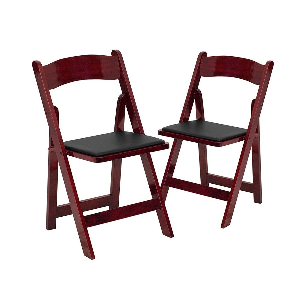 2 Pack Mahogany Wood Folding Chair with Vinyl Padded Seat