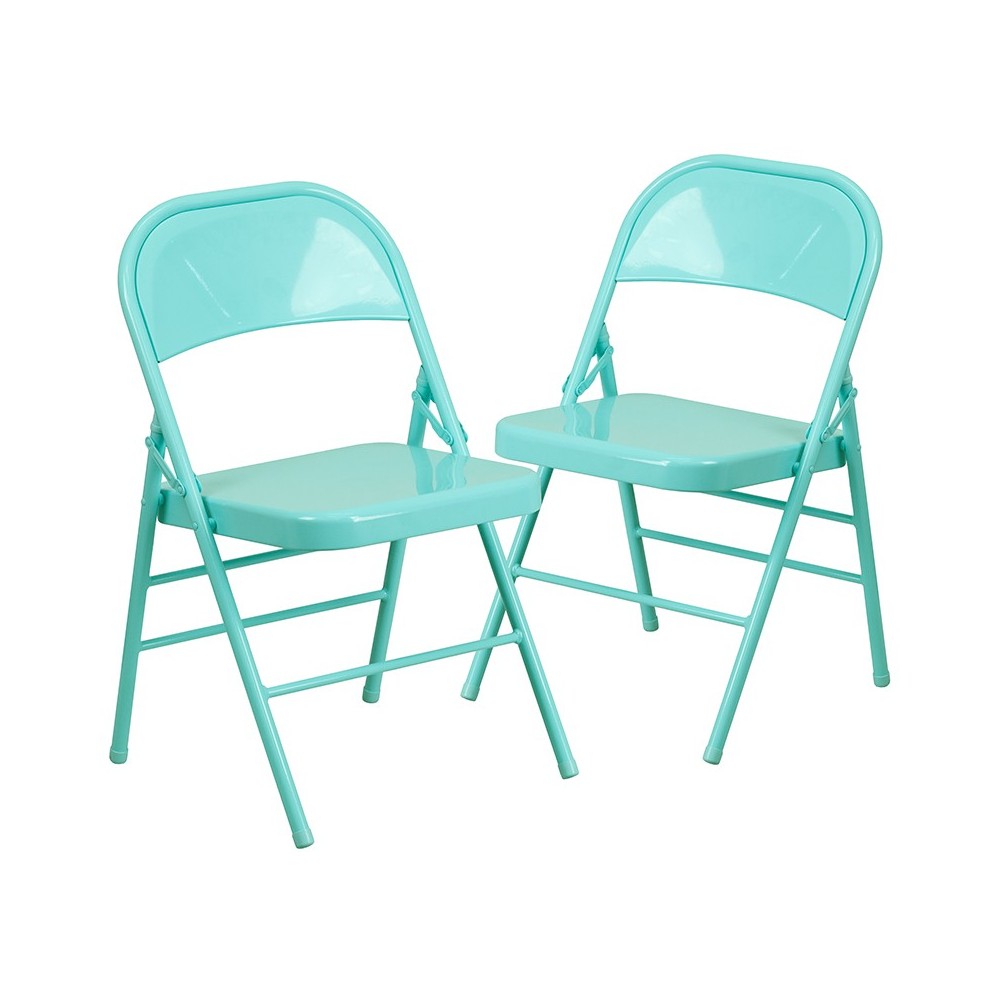 2 Pack Series Tantalizing Teal Triple Braced & Double Hinged Metal Folding Chair