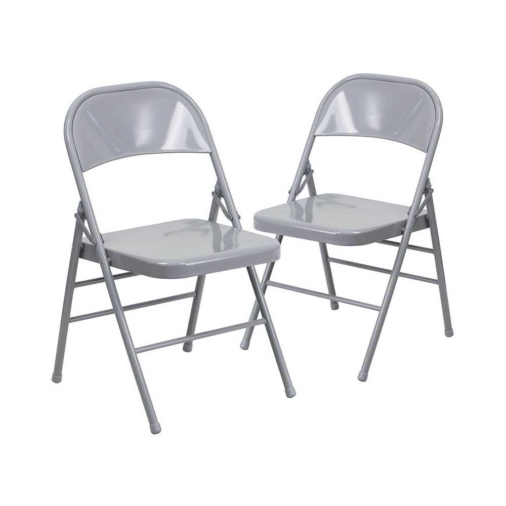 2 Pack Triple Braced & Double Hinged Gray Metal Folding Chair