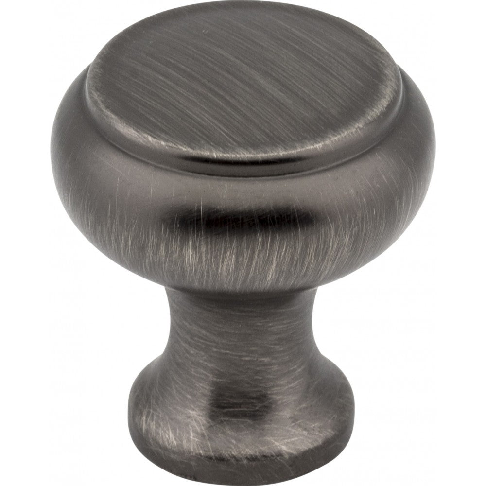 The raised ring detail of this Brushed Pewter 1-3/16" diameter button knob from Westbury brings a radiant splendor to any cabinet. This collection from Elements features a matching arched pull and is available in three additional finishes. Each item is individually wrapped to protect the item from damage. Attachment hardware is included.