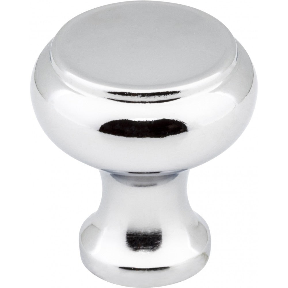 The raised ring detail of this Polished Chrome 1-3/16" diameter button knob from Westbury brings a radiant splendor to any cabinet. This collection from Elements features a matching arched pull and is available in three additional finishes. Each item is individually wrapped to protect the item from damage. Attachment hardware is included.