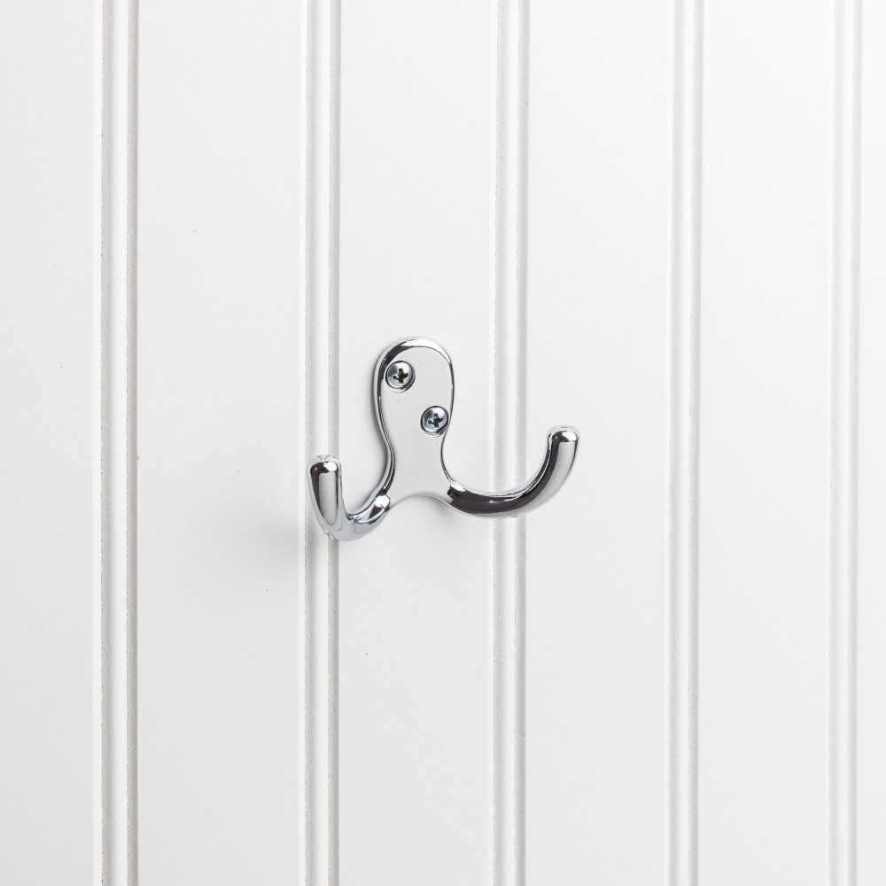 The sleek yet casual charm of this Polished Chrome double prong hook is ideal for most any style home. These Elements wall mounted hooks provide an abundance of space by helping you hang your coat, hat, robe, or towel. Each hook is weight tested to hold up to 35 pounds and individually packaged to prevent damage, and available in three beautiful finishes. Packaging includes mounting screws and installation instructions.