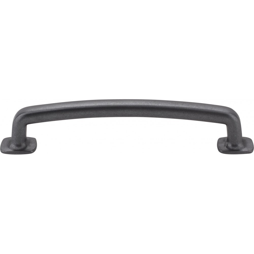- 5-7/8" Overall Length Forged Look Flat Bottom Pull 128 mm center-to-center. Packaged with two 8-32 x 1" and two Break-away screws. Finish: Gun Metal