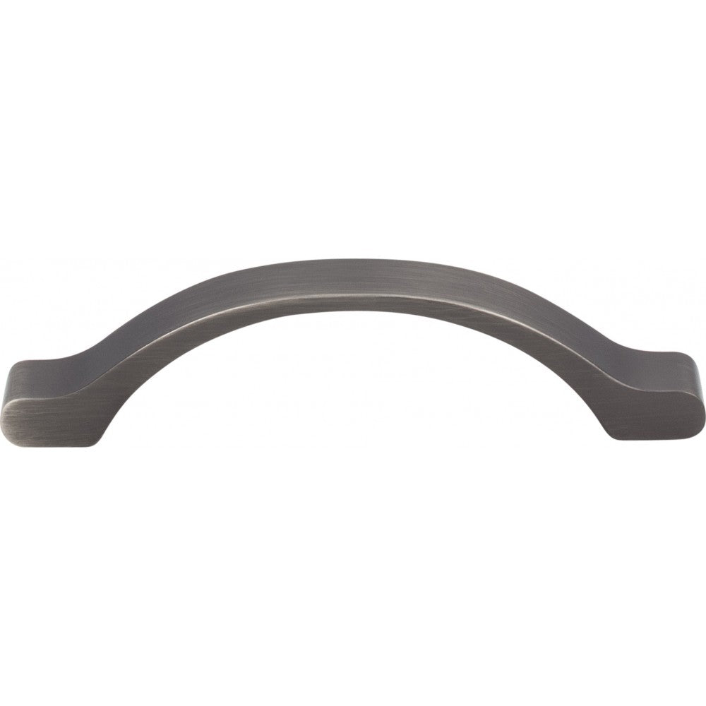 The sturdy uniform width handle and ribbon-like curved feet make this Brushed Pewter 4-7/8" overall length Seaver pull from Elements a gentle but bold visual. Available in three additional finishes, and an additional length, a simple well-rounded knob matches these pulls nicely. Each item is individually wrapped to protect the item from damage. Attachment hardware is included.