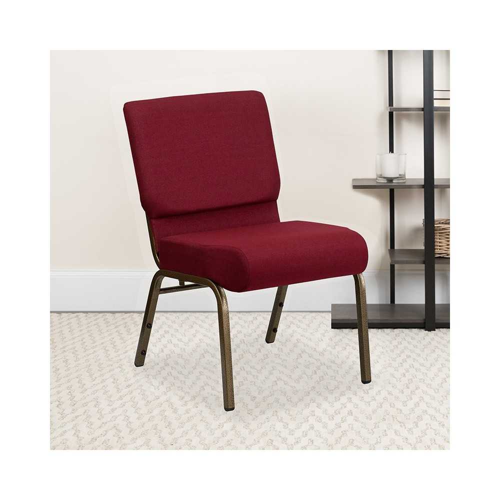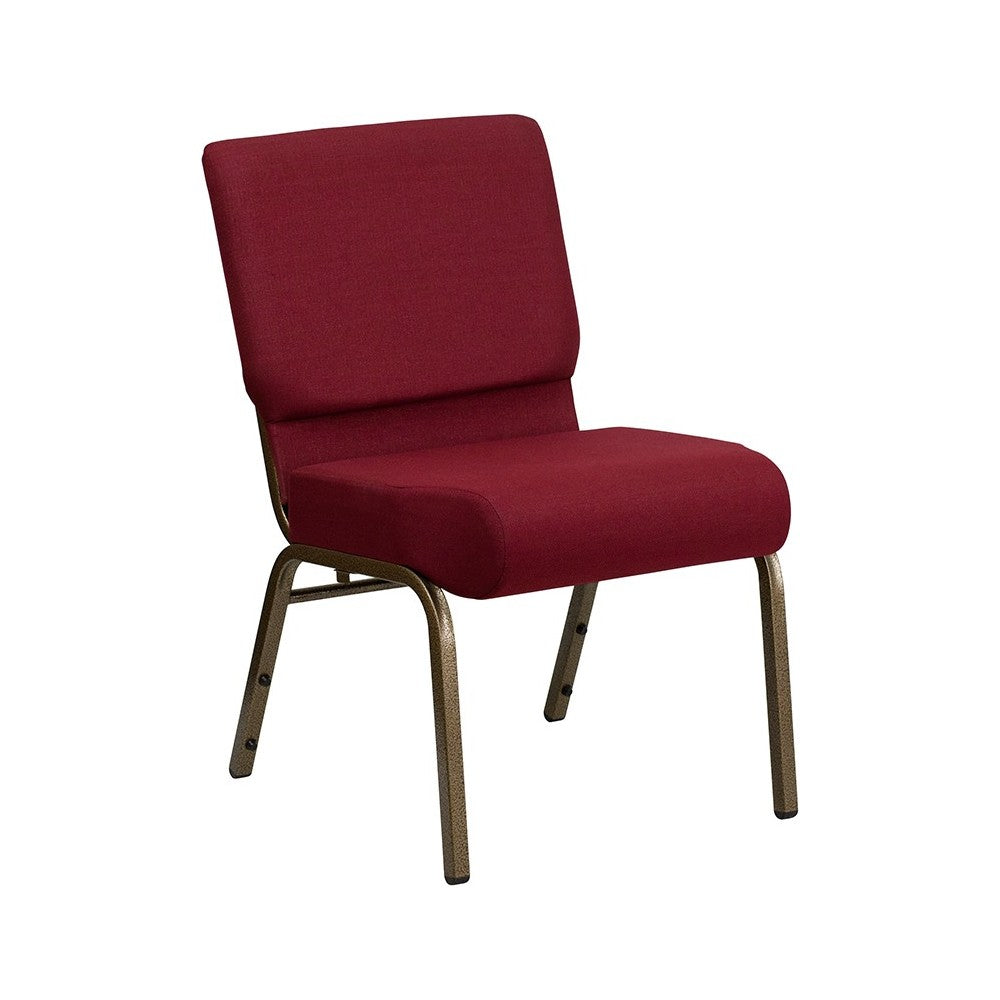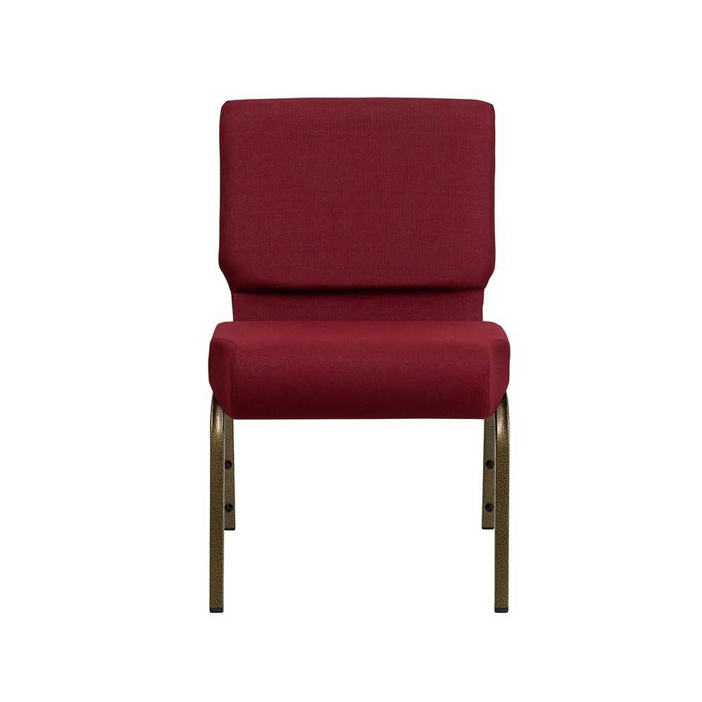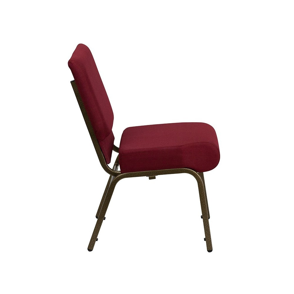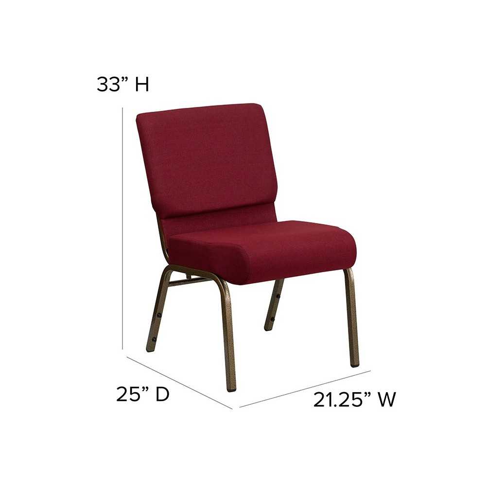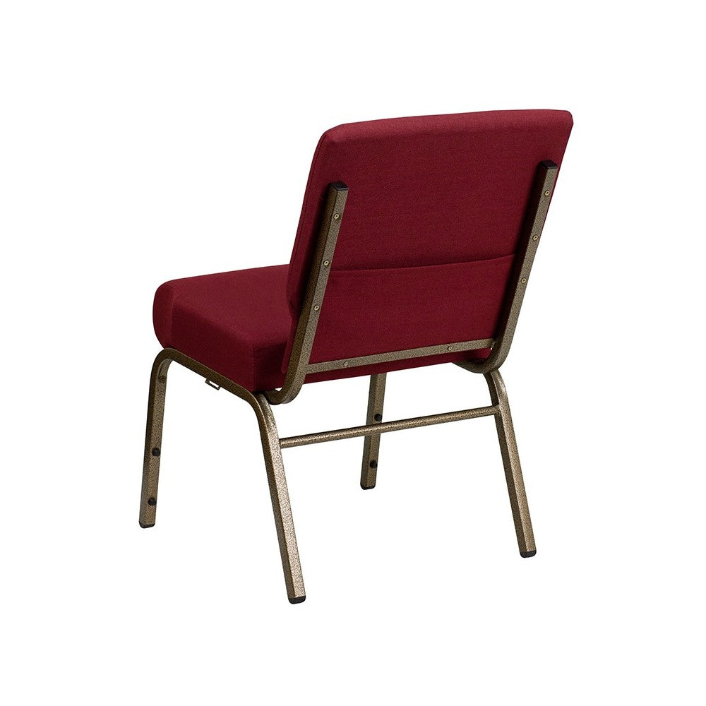 21''W Stacking Church Chair in Burgundy Fabric - Gold Vein Frame