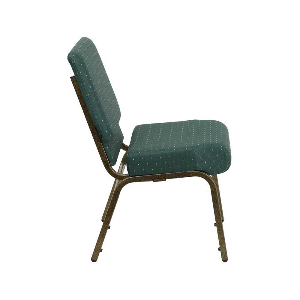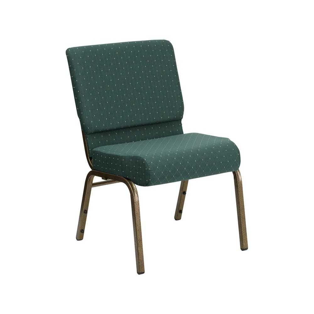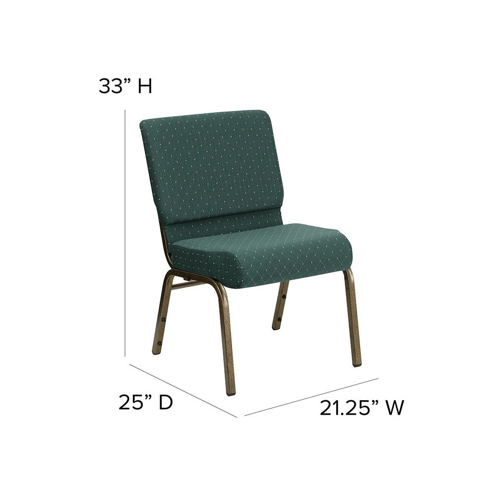 21''W Stacking Church Chair in Hunter Green Dot Patterned Fabric - Gold Vein Frame