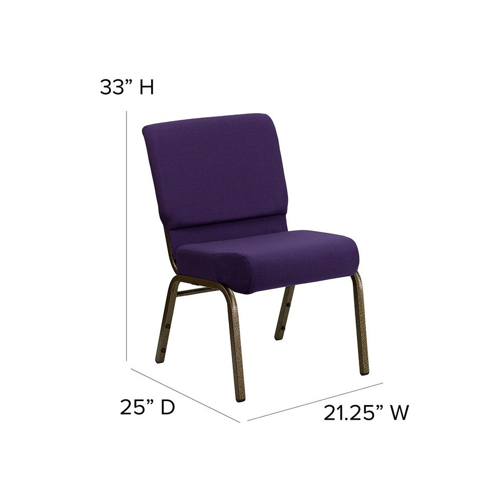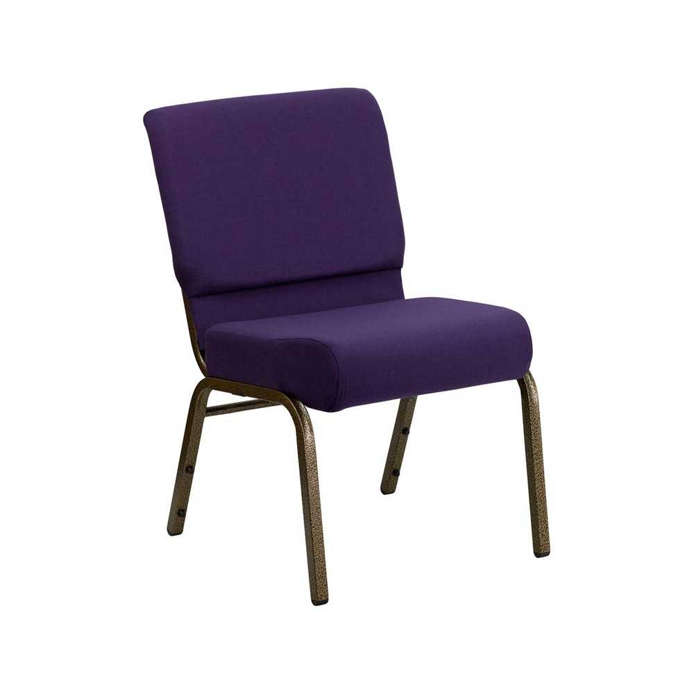 21''W Stacking Church Chair in Royal Purple Fabric - Gold Vein Frame