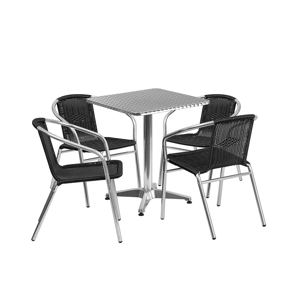 23.5'' Square Aluminum Indoor-Outdoor Table Set with 4 Black Rattan Chairs