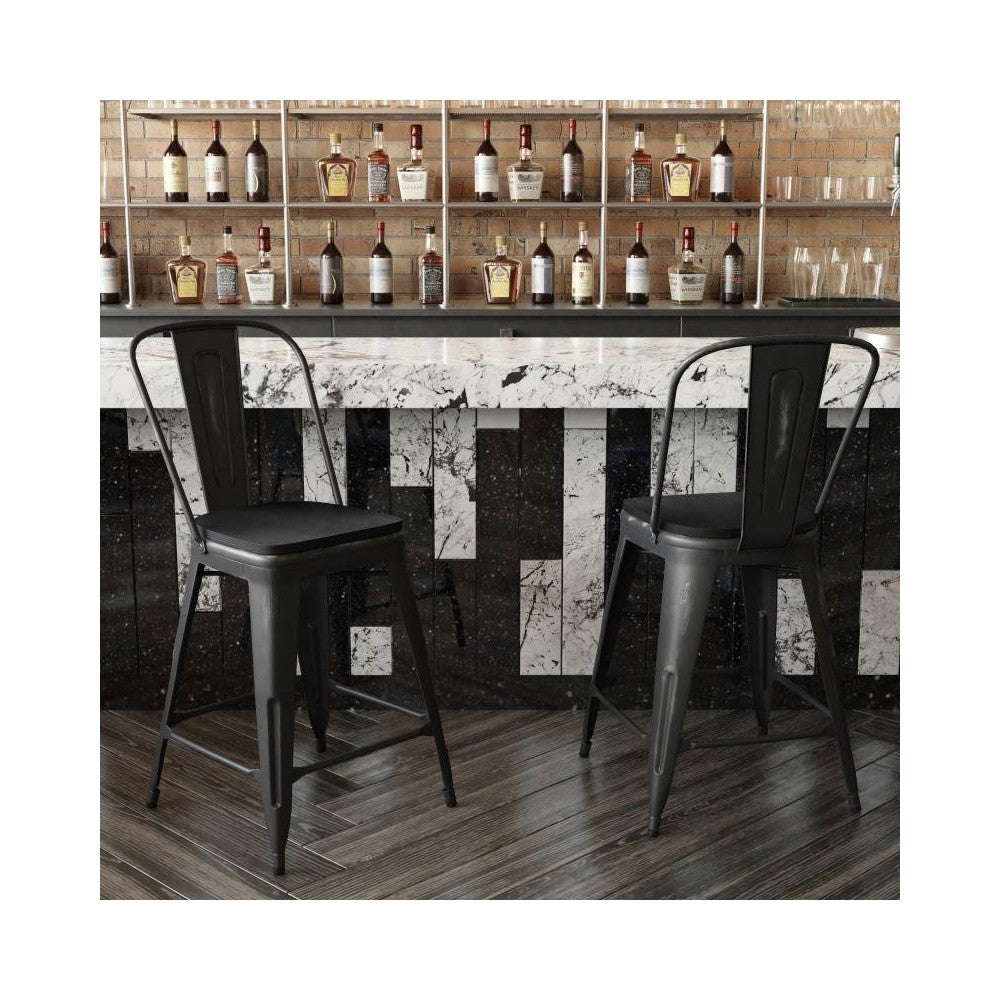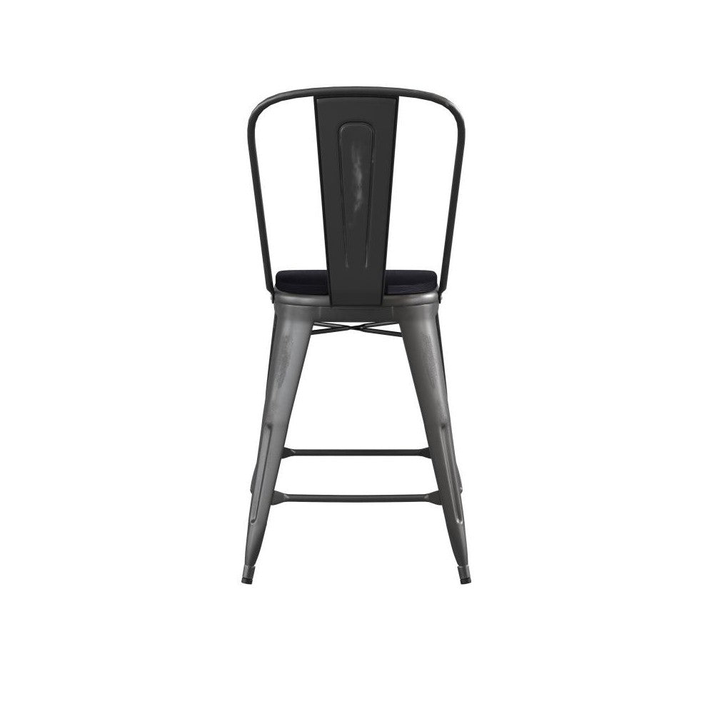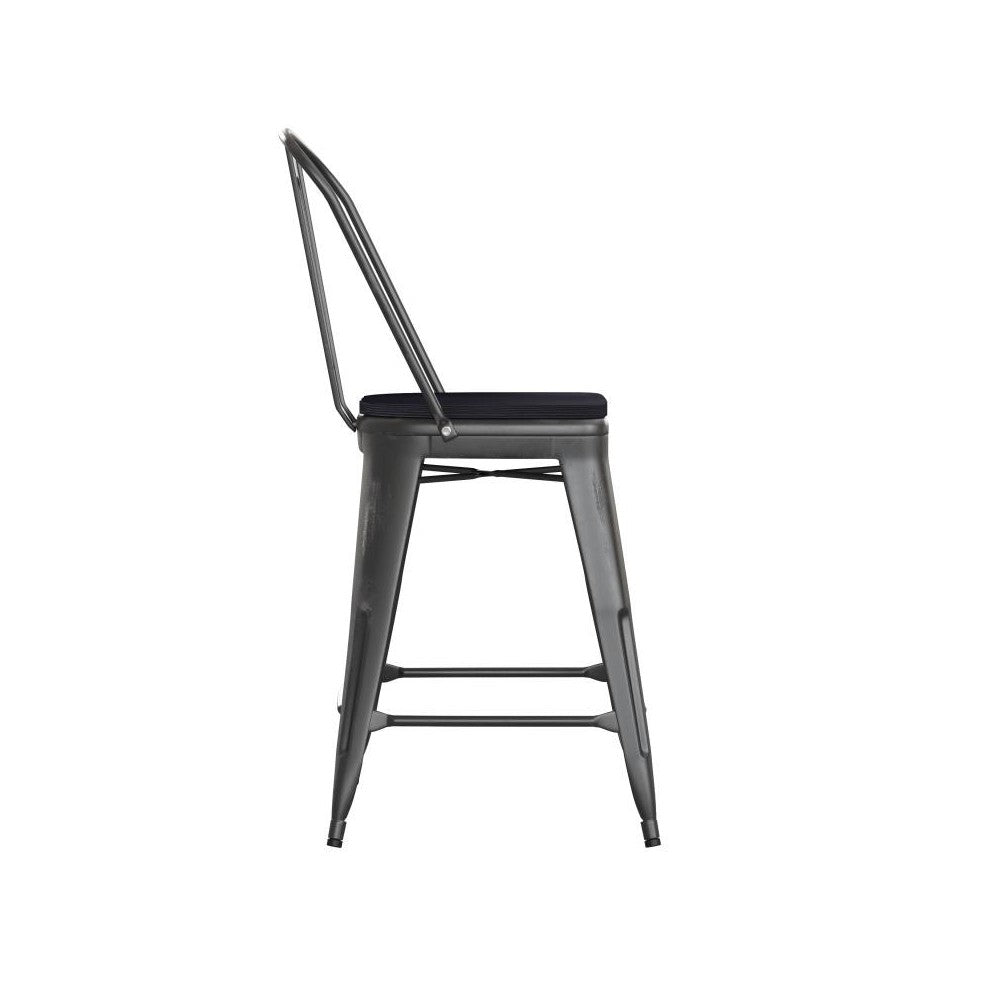 Refresh the seating in your indoor or outdoor entertaining spaces with this colorful metal counter stool with an all-weather poly resin seat. Whether setting up a cozy space in your kitchen to enjoy a light breakfast or appointing your restaurant or bistro, you'll be pleasantly surprised how well these metal counter stools blend in with your existing furnishings. Constructed to hold up in commercial settings, this dining counter stool will instantly modernize your restaurant, cafe, or bar by adding splashes of color. Mix and match colors and chair heights for a fun, energetic feel. The full back is ergonomically curved and includes a vertical slat while the lower support bracing doubles as a footrest, promoting proper posture and an improved sitting experience. The polystyrene seats will not rot, chip, or peel to provide years on long-lasting use. Assembly takes less than 10 minutes with the included tools and cleanup is quick and easy with water and a neutral detergent. [ET-3534-24-BK-PL1B-GG]