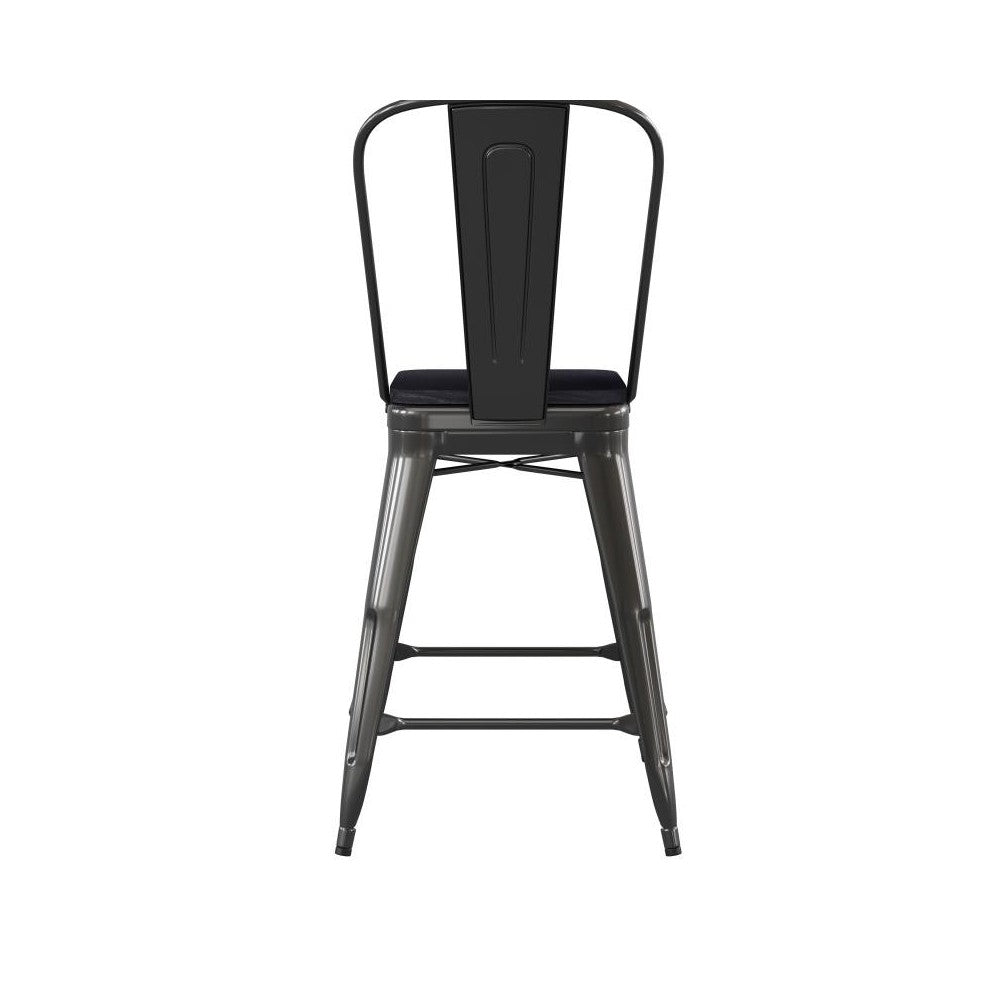 Sit down and chat for a while on these comfy counter stools around your kitchen island. Appealing in both modern and industrial spaces, this metal stool performs in any environment. With a weather-resistant frame and all-weather polystyrene seat you can enjoy dining and socializing outdoors on your patio. Designed for commercial environments the steel frame is coated in a durable powder coat finish to endure in high traffic areas. With a 500 pound static weight capacity you'll be able to accommodate all visitors for as long as you're open for business. Whether you need bar furniture for your home or restaurant business you'll be more than pleased with the heavy-duty galvanized steel construction that will last for years. Assembly is easy and you can quickly convert your slat back stool to a backless stool with the removable backrest. Keep your new seating clean with water and a neutral detergent. [CH-31320-24GB-BK-PL2B-GG]