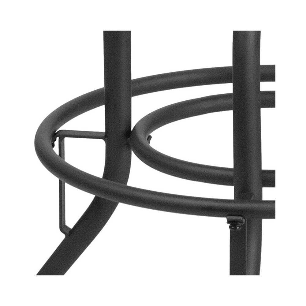 A uniquely designed piece that joins industrial and rustic styles, this counter height stool is sure to impress! Wherever you place this black bar stool, with a swivel lift seat boasting soft and durable LeatherSoft upholstery, it's sure to add an exciting look to your space. This stool has a heavy duty metal frame that is further stabilized by the attached footrest. The swivel seat adjusts in height to accommodate different users and protective adjustable floor glides prevent damage to flooring. Wipe down with a dry cloth to keep this stool looking great. The one of a kind design of this backless stool will completely transform the area. [ET-BR542-224-GG]