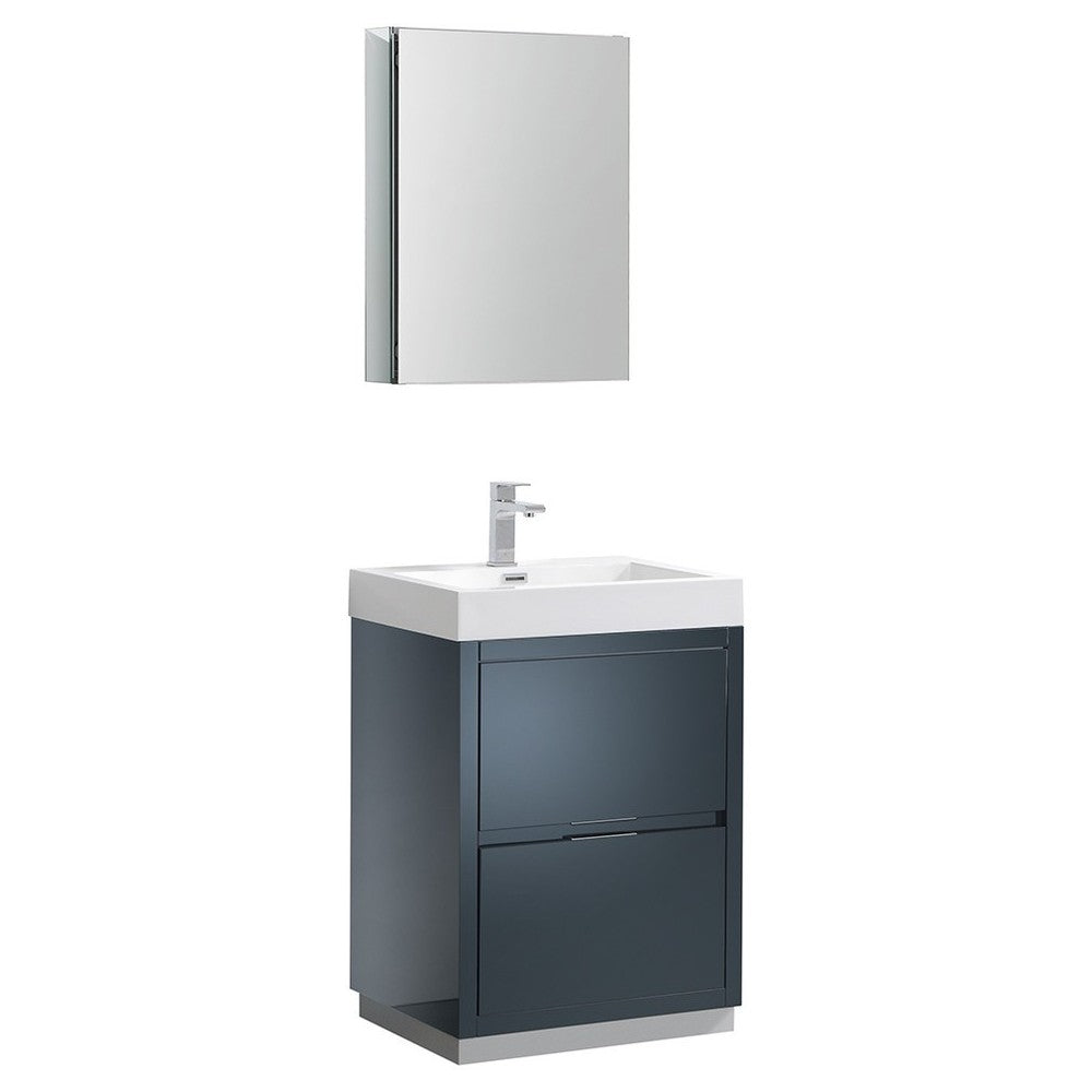24 Dark Slate Gray Free Standing Modern Bathroom Vanity w/ Medicine Cabinet