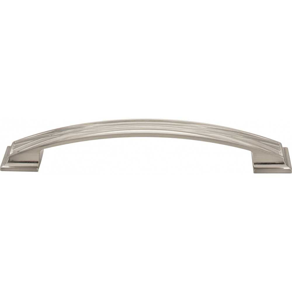 - 7-5/8" Overall Length Lined Cabinet Pull. Holes are 160 mm center-to-center. Packaged with two 8-32 x 1" screws. Finish: Satin Nickel