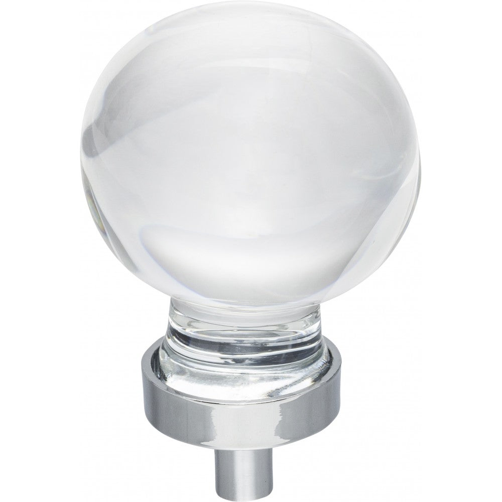 Recalling the glamorous era of Old Hollywood, Harlow glass knobs add excitement and radiance to any kitchen, bath, or closet. This exquisite 1-3/8" diameter Polished Chrome sphere cabinet knob, also available in a smaller size, adds a distinctive touch to any cabinet or drawer. This Jeffrey Alexander collection offers four finish options, meeting both traditional and transitional design needs. Each item is individually wrapped to protect the item from damage. Attachment hardware is included.