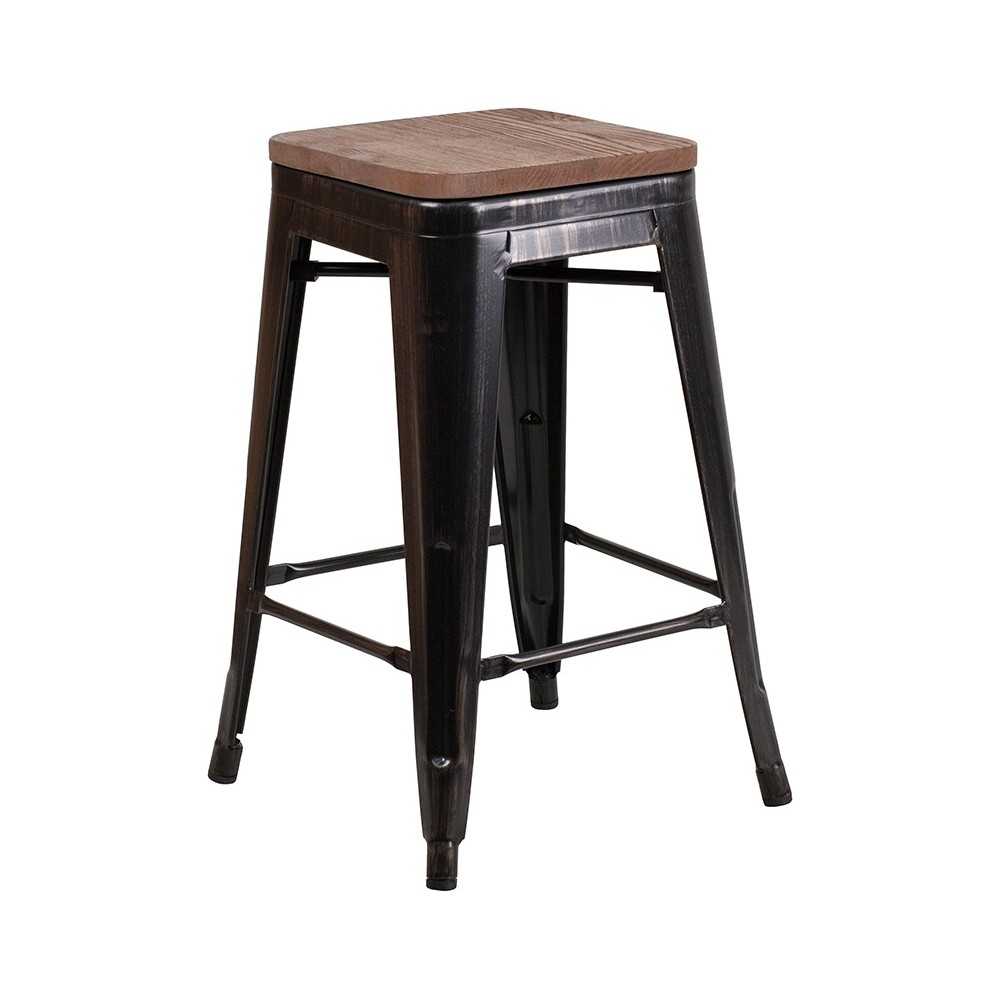 Save on space with this Backless Metal Bar Stool with wood seat. The clean lines and simple design of this square, industrial style stool will look great in your kitchen or inside your bar/restaurant. Designed to stack, this stool is an ideal choice in the restaurant industry. A cross brace underneath the seat adds extra stability and features plastic caps that prevent the finish from scratching when stacked. The lower support brace doubles as a footrest, and floor glides protect your floor by sliding smoothly when moving it. Designed for both commercial and residential use, this bar height stool will provide refreshing rustic feel with its metal and wood features. [CH-31320-24-BQ-WD-GG]