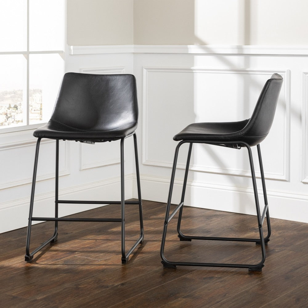 Bring the sophisticated look of leather seating to your kitchen with our faux leather counter stools. These counter chairs will be the perfect addition to your eating space as they work great for everyday use. The synthetic leather is soft to the touch, while the curved seating provides comfort. Supported with powder-coated steel legs for a durable, long lasting design. These counter stools look best in an urban industrial styled space, but also can coordinate well with many other popular interior styles.