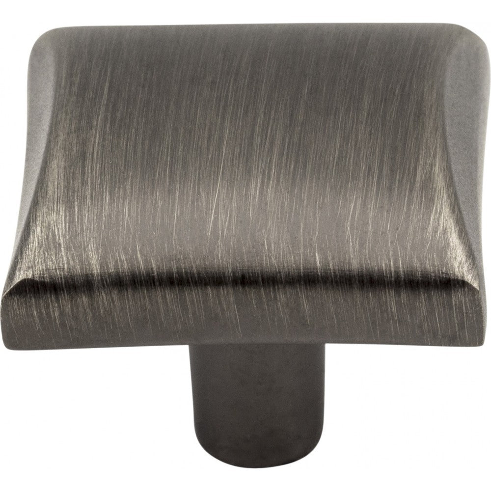 An arched square with outwardly curved contour design make this Brushed Pewter 1-1/8" overall length knob from Glendale by Elements the perfect accent for many cabinet styles. This accommodating Elements collection also features a coordinating flared square foot arch pull and is available in nine fabulous finishes for various design choices. Each item is individually wrapped to protect the item from damage. Attachment hardware is included.