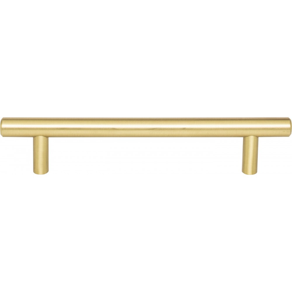 - 176 mm (6-15/16") Overall Length 7/16" Diameter Steel Cabinet Bar Pull with Beveled Ends. Holes are 128 mm center-to-center. Packaged with two 8-32 x 1" and two Break-away screws. Finish: Brushed Gold