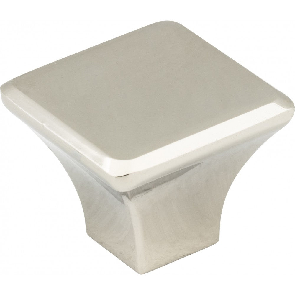 Jeffrey Alexander's Marlo blends a clean, square shape with a soft, chamfered edge, adaptable to any design scheme in any room. This square 1-1/4" overall length Polished Nickel cabinet knob is available in two additional sizes and pairs confidently with five standard pull lengths as well as an appliance handle. The multitude of size options in both knobs and pulls, combined with four additional distinctive finishes to choose from, means this modern collection can accommodate almost any project. Each item is individually wrapped to protect the item from damage. Attachment hardware is included.