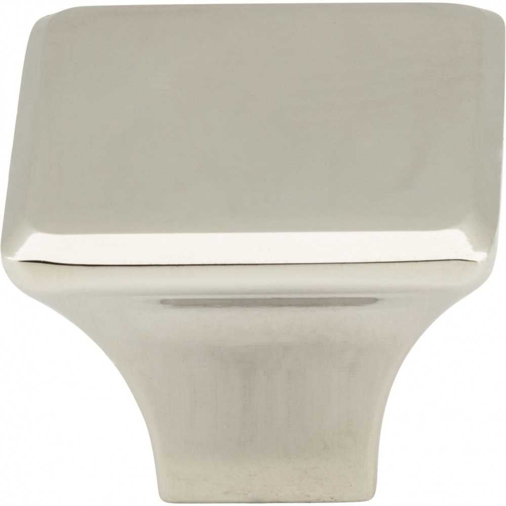 - 1-1/4" Overall Length Square Cabinet Knob. Packaged with one 8-32 x 1" and 1-3/4" Break-away screw. Finish: Polished Nickel