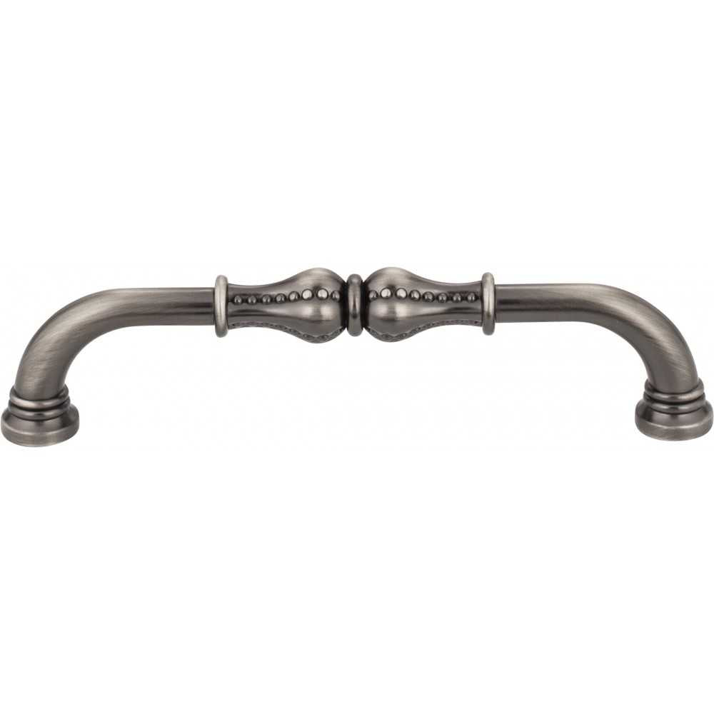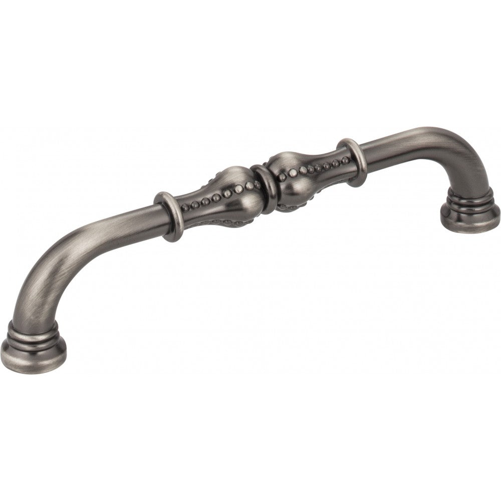 - 5-11/16" Overall Length Beaded Cabinet Pull. Holes are 128 mm center-to-center. Packaged with two 8-32 x 1" screws. Finish: Brushed Pewter